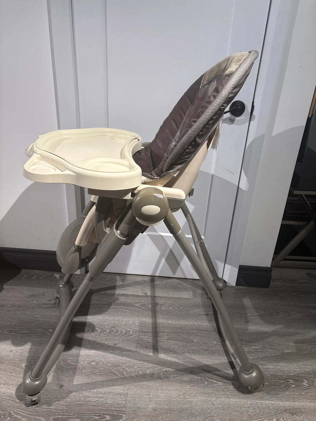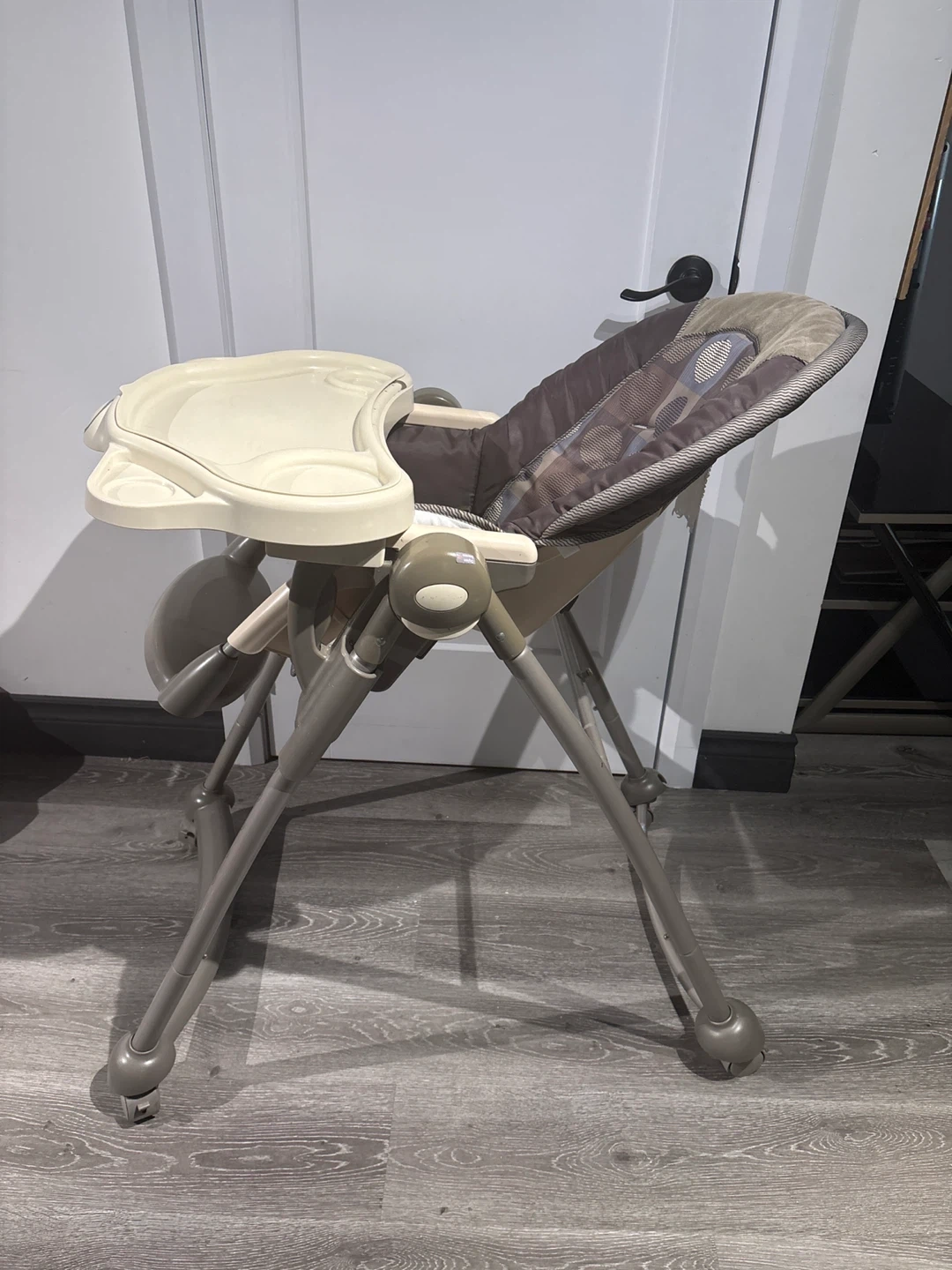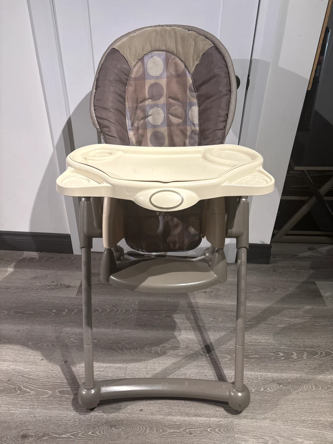 Here's a gently used Eddie Bauer high chair! It's in great condition and ready for your little one. It features a removable tray for easy cleaning and a comfortable seat. Perfect for meal times!