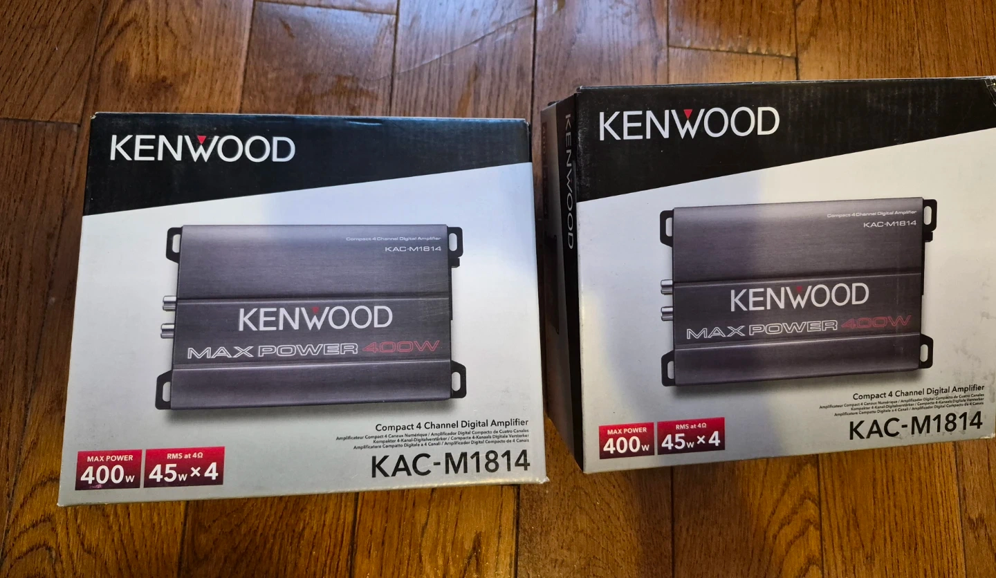 The Kenwood KAC-M1814 4-channel Class D digital amplifier gives your audio system a significant boost in power and clarity. Its compact size makes it easy to install in cars, motorcycles, or boats, while the marine-rated design protects it from moisture and salt. Each channel delivers 45 watts RMS, giving you more than double the power of most factory stereos. This amplifier works with virtually any source, whether you're using RCA cables from an aftermarket receiver or speaker-level inputs from a factory radio. The signal detection feature makes installation even easier. Built with separate boards for the preamp and power stages, it delivers clean, detailed sound. The KAC-M1814 also includes variable high-pass and low-pass filters so you can fine-tune the sound to your setup. With overheat, short-circuit, and overload protection, it's designed for safe and reliable operation. Compact, powerful and versatile, this amplifier is ready to deliver loud, clear sound on the road or on the water.
