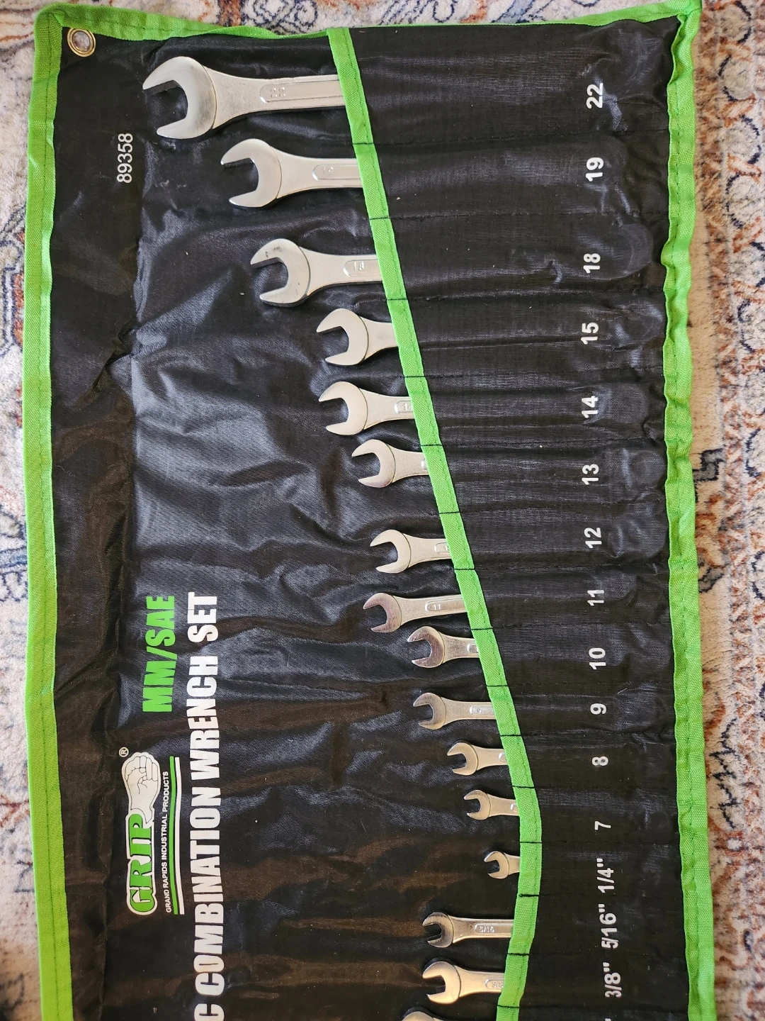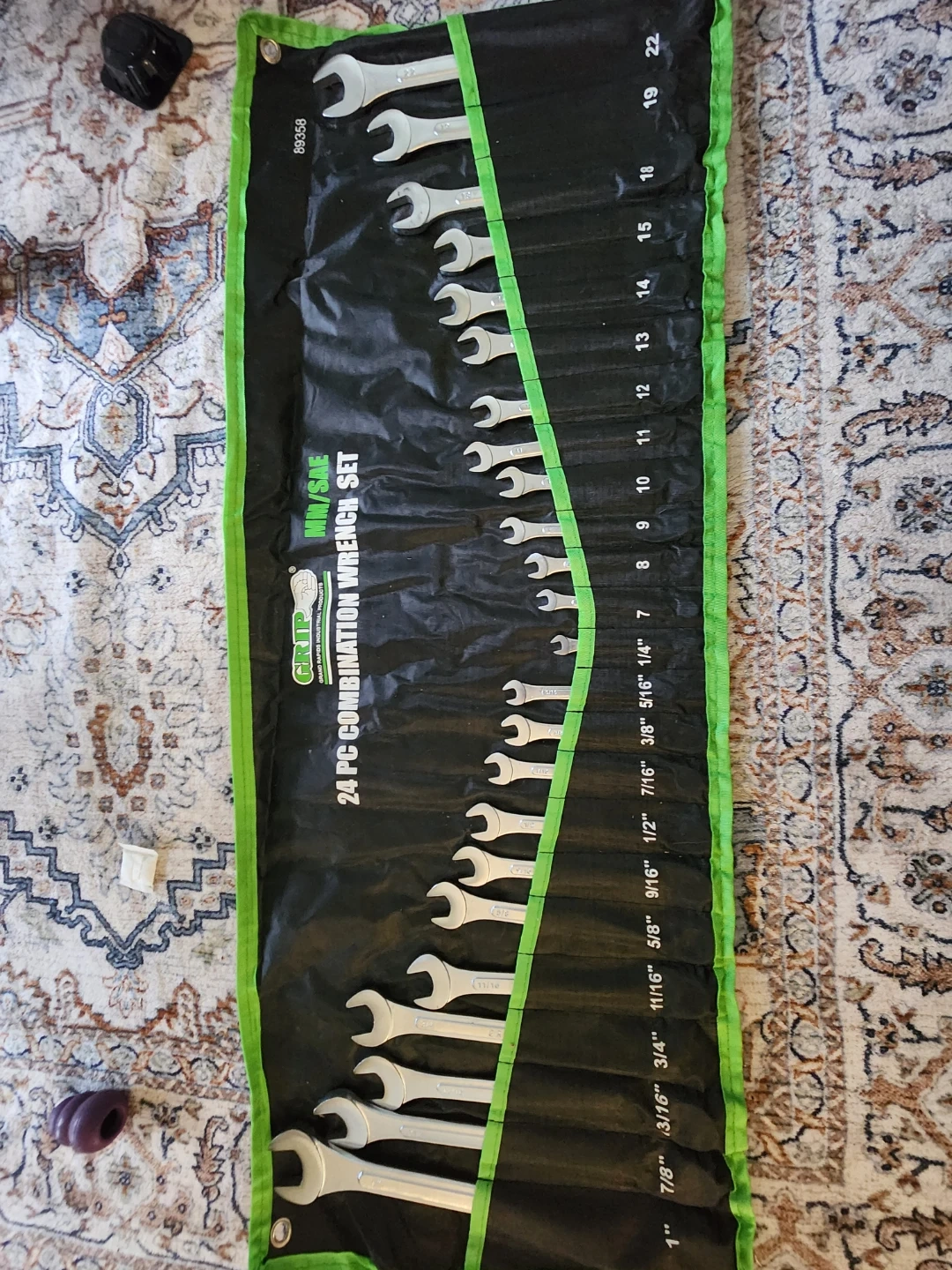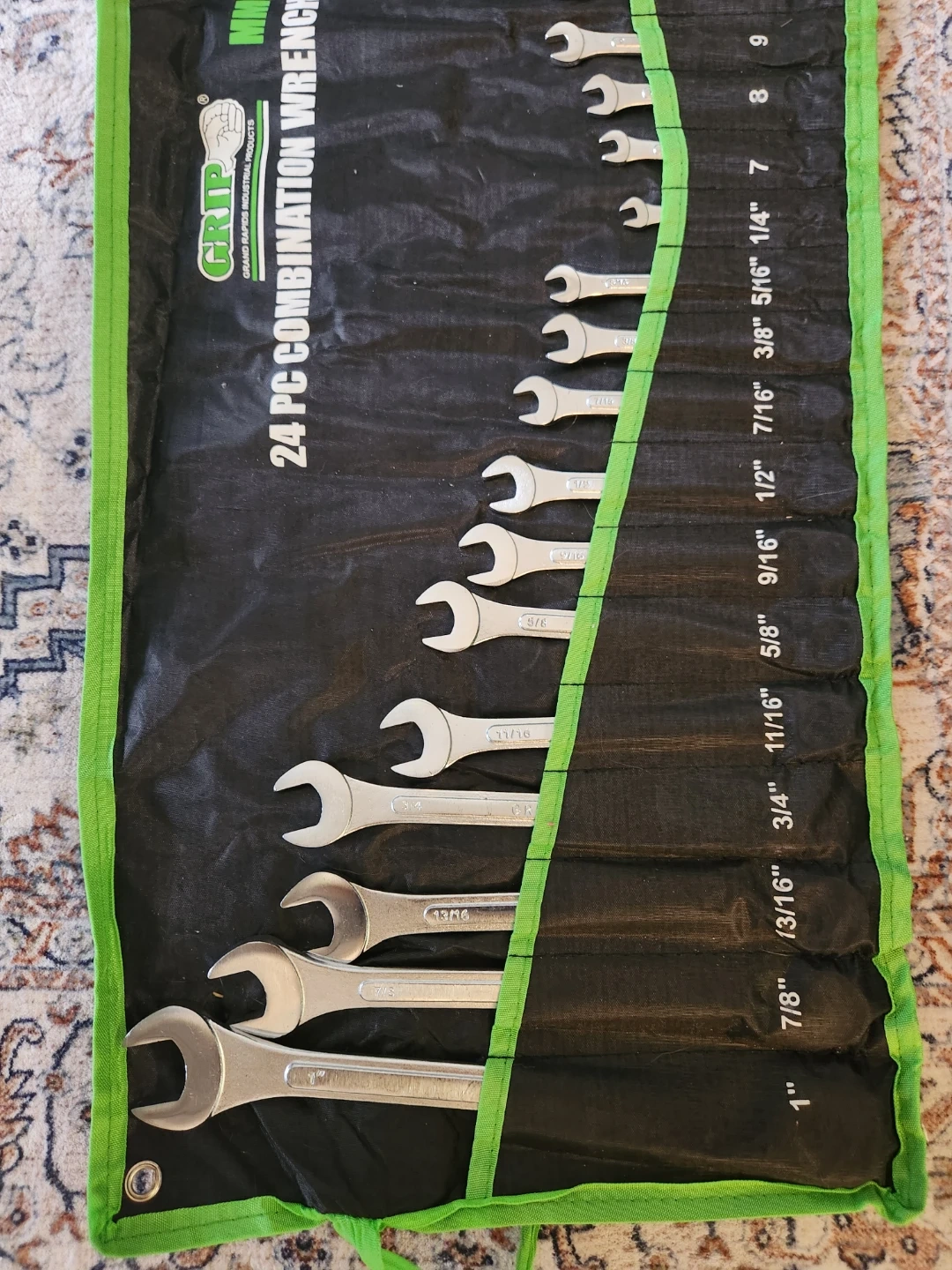Selling a Grip 24-piece combination wrench set. It includes both metric and SAE sizes, ranging from 1/4" to 1" and 7mm to 22mm. Perfect for any DIY projects or professional use!