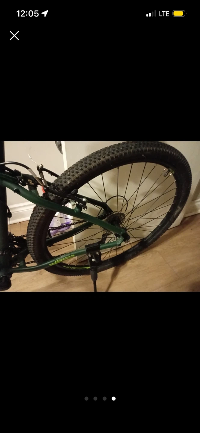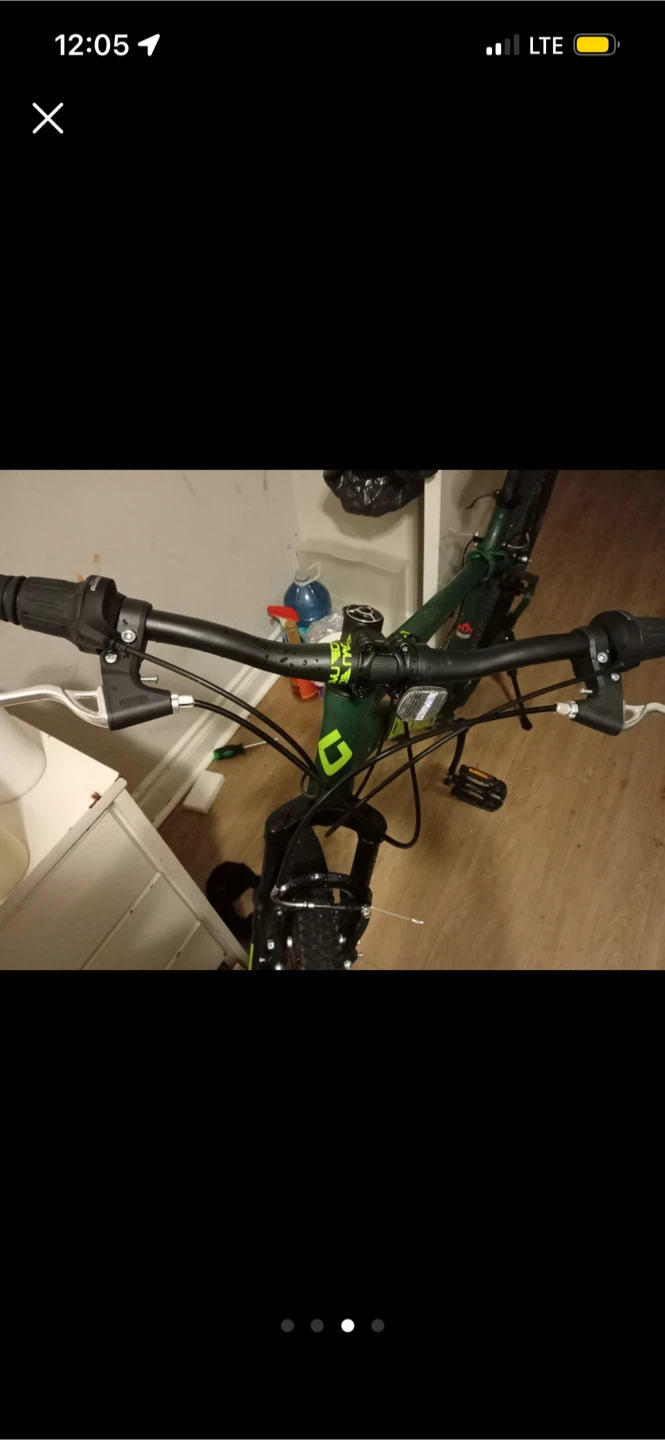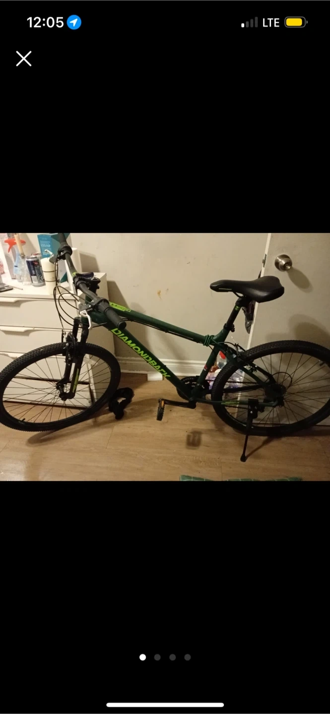 Selling a Diamondback mountain bike in green. It's ready for some new adventures! Left shifter is cut but still works if you tape it up together, just the rubber part that’s cut