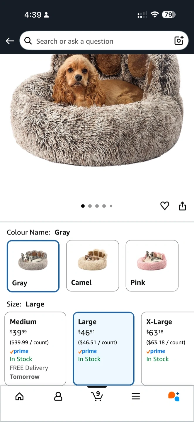 Selling a large, cozy dog bed in gray! It's super fluffy and soft, perfect for your furry friend to snuggle up in. The bed is in great condition and ready for a new home. Size is Large.