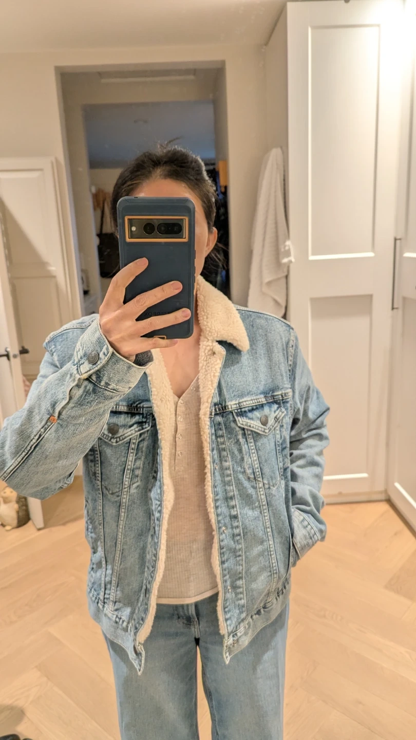 I am selling my men's American Eagle denim jacket with a cozy sherpa collar. It is super warm and cozy and in excellent condition as I have only worn it a handful of times. I find that I have not gravitated towards this jacket in the last year so I would love to give this item a second chance at life