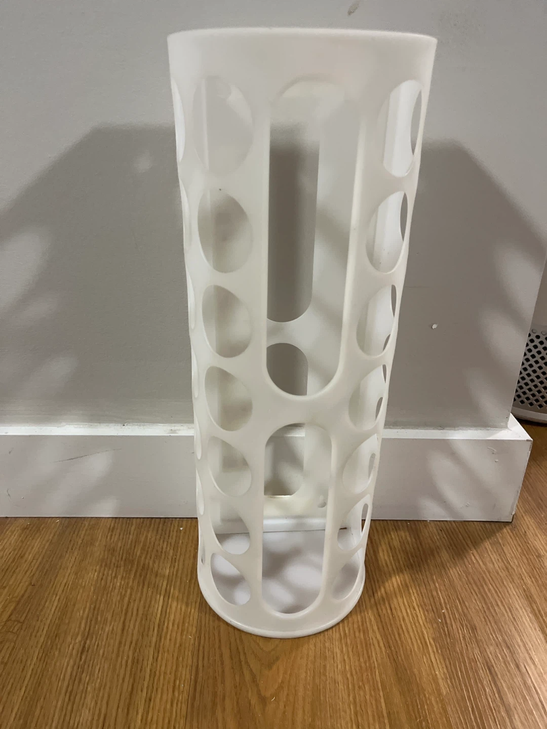 Selling a handy white plastic bag holder. It's in great shape and perfect for keeping your plastic bags organized and out of sight. Great for any kitchen or pantry.