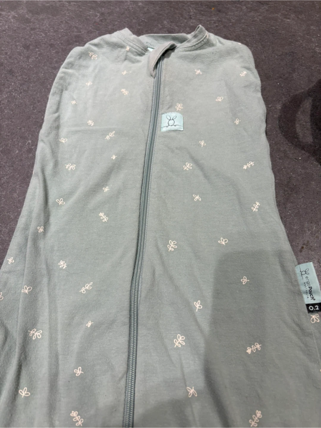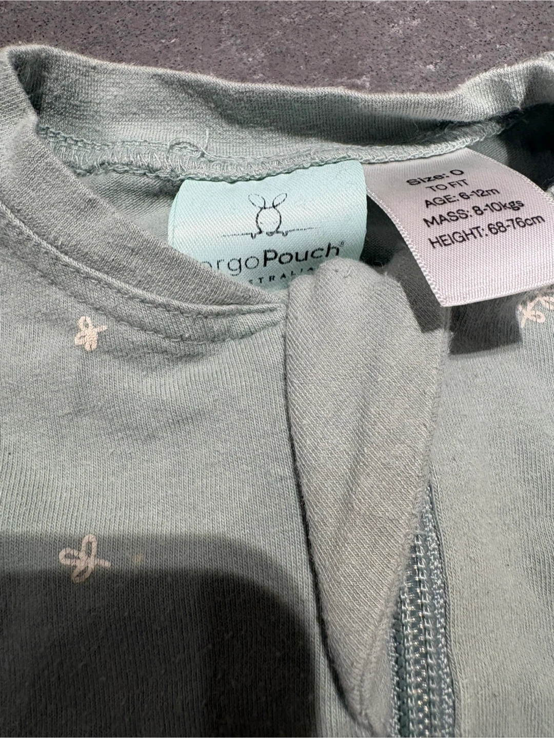 Ergo pouch cotton in sage. 6 to 12 month