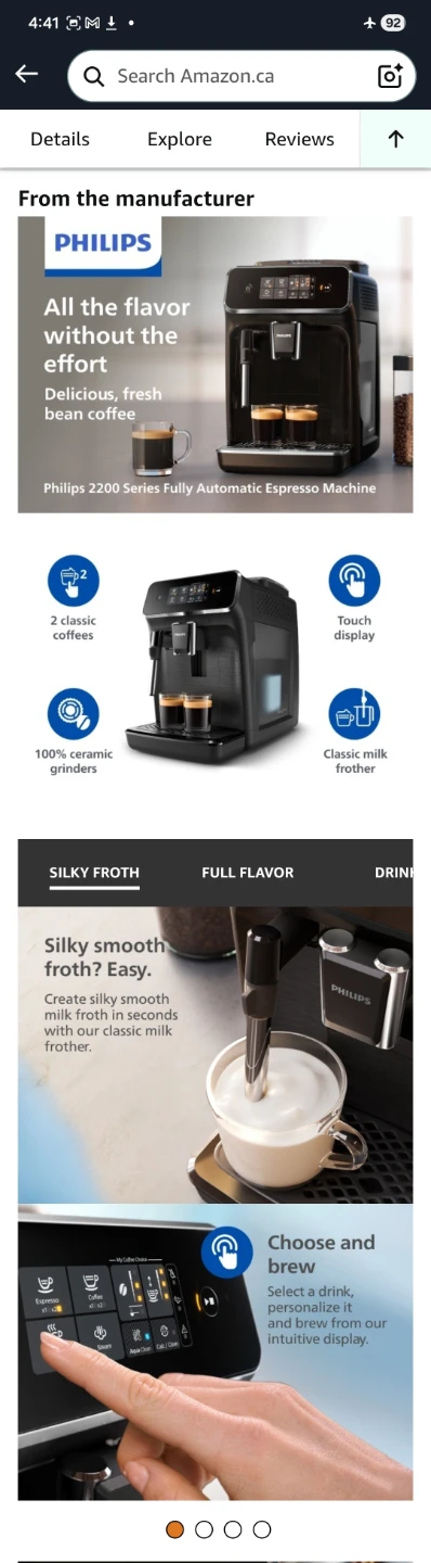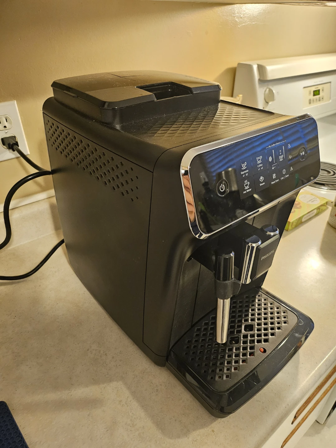 Brew the perfect espresso with this Philips 2200 series fully automatic espresso machine, featuring a classic milk frother, two coffee varieties, and an intuitive touch display. This machine is in great working condition, ready to deliver delicious coffee right in your kitchen. It uses a 100% ceramic grinder.
