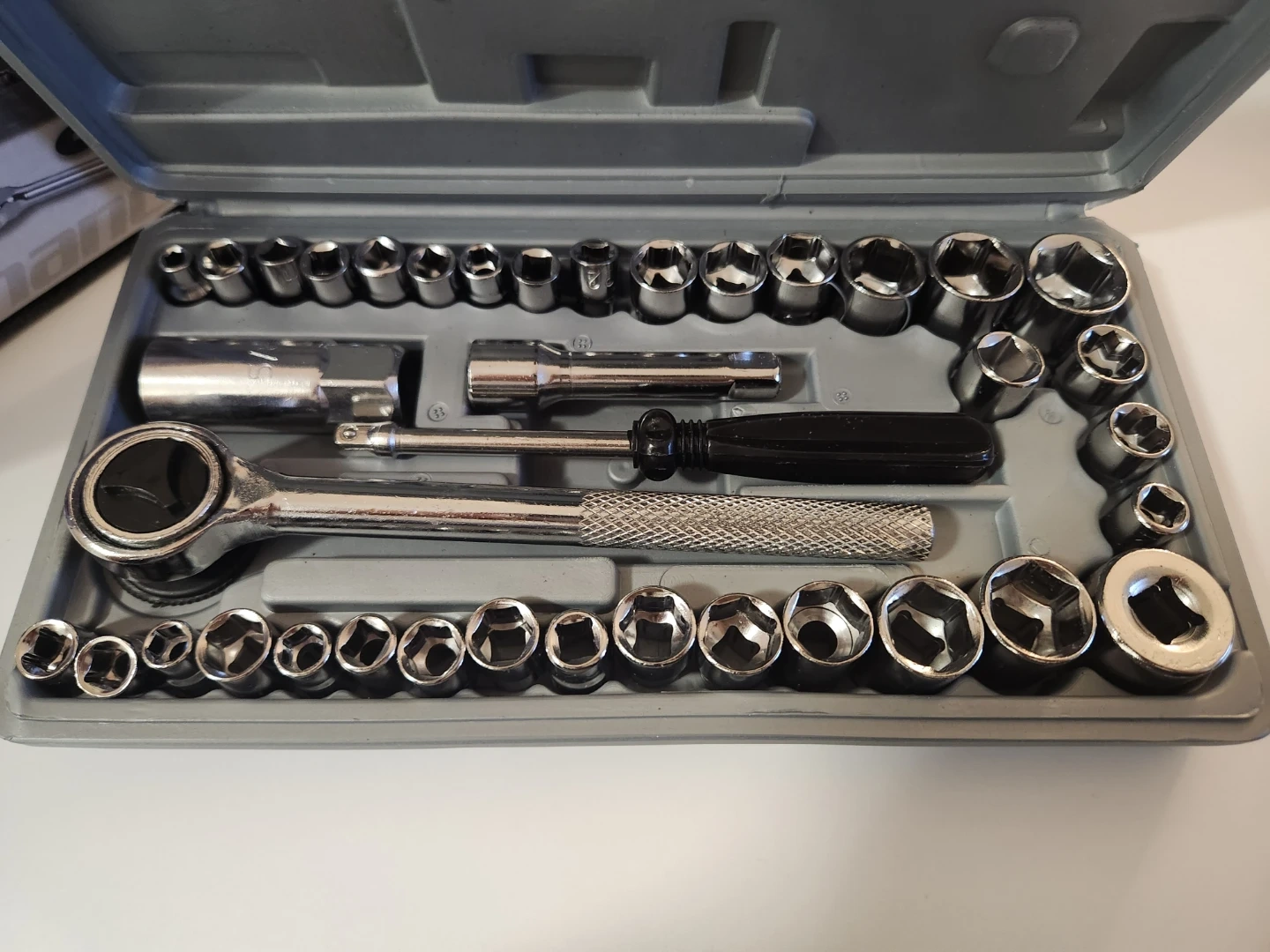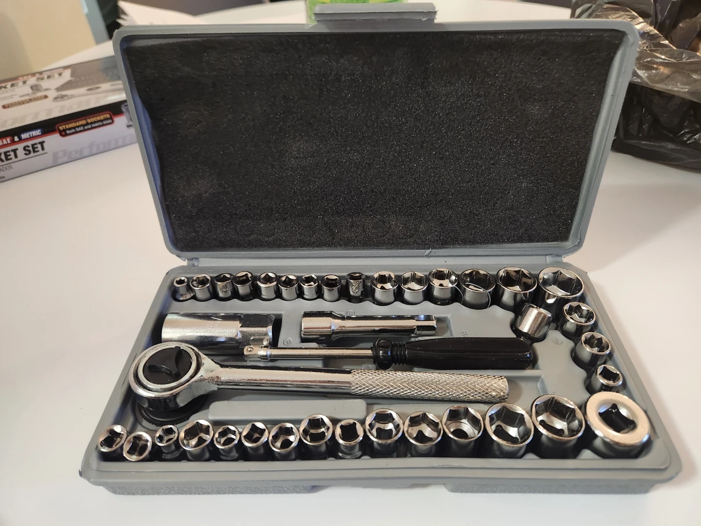 Selling a Performance Tool 40-piece socket set. It includes both SAE and metric sizes, with a storage case to keep everything organized. The set contains: