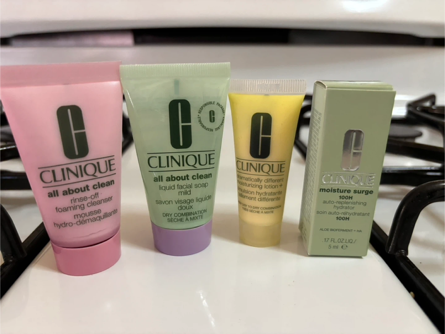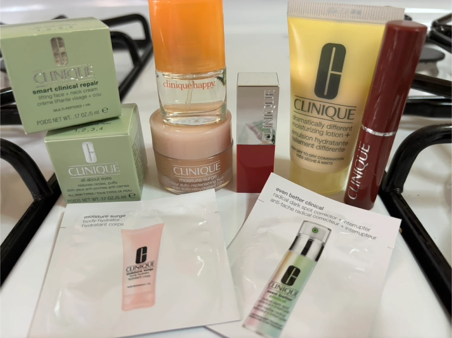 Selling a bundle of sample BRAND NEW Clinique skincare products! Includes a variety of items. Perfect for trying out different products or travel sizes!