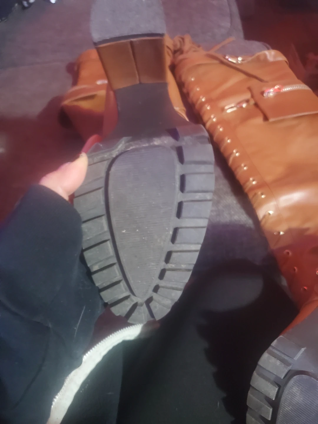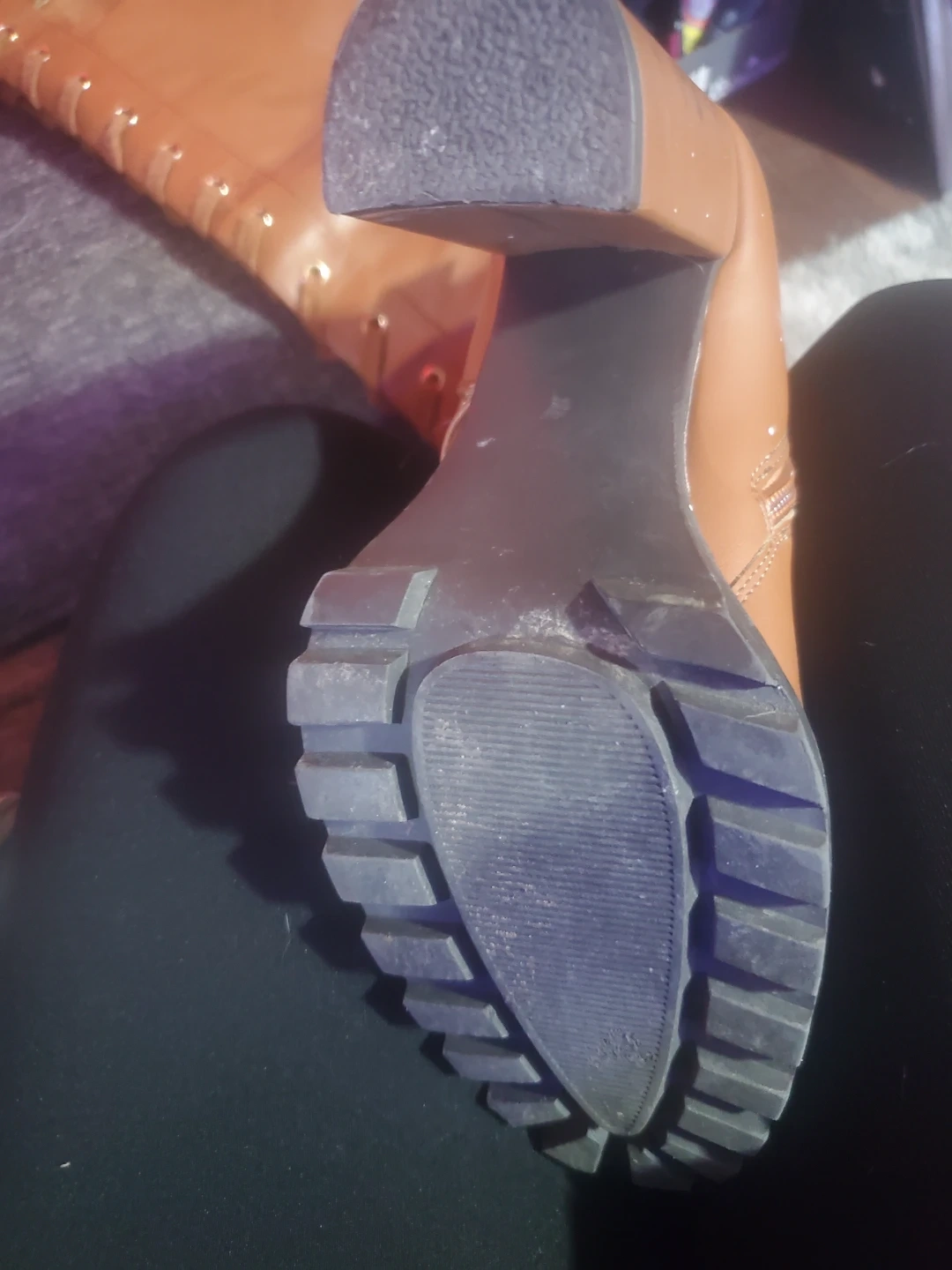 Selling a pair of Elira boots in a lovely brown colour! They are a size 7. The upper is man-made, and the inner lining is a textile/man-made blend. The outsole is also man-made.
