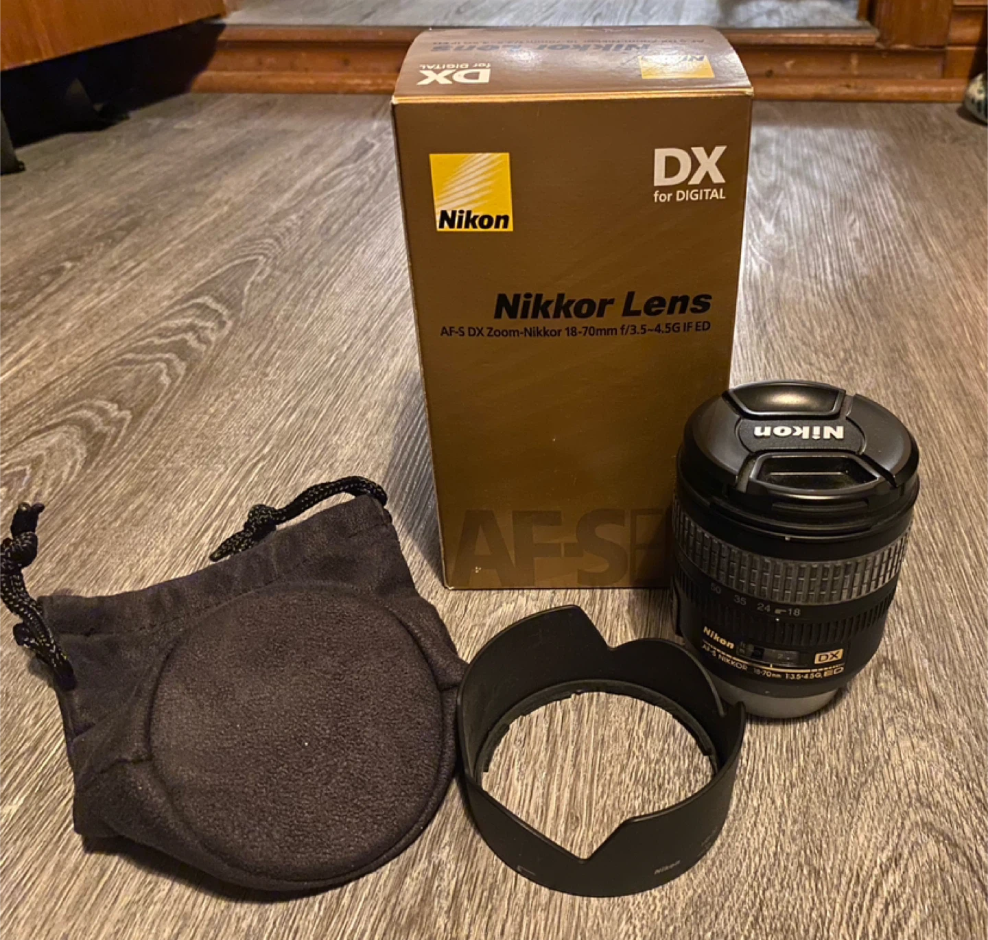 . Nikon AF-DX Zoom-Nikkor 18-70mm f/3.5~4.5GIF ED lens with dust bag and hood (never used)