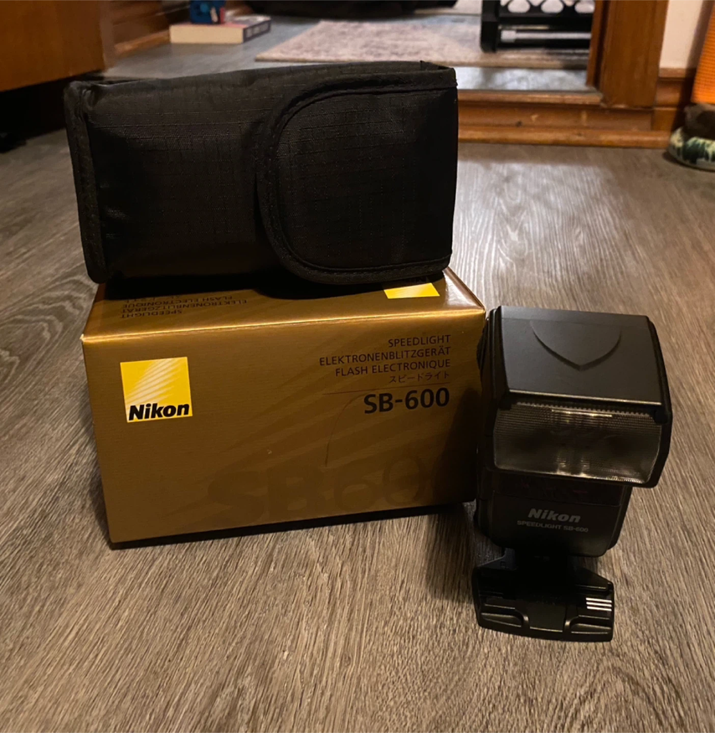 . Nikon SB-600 speed light electronic flash with protective case