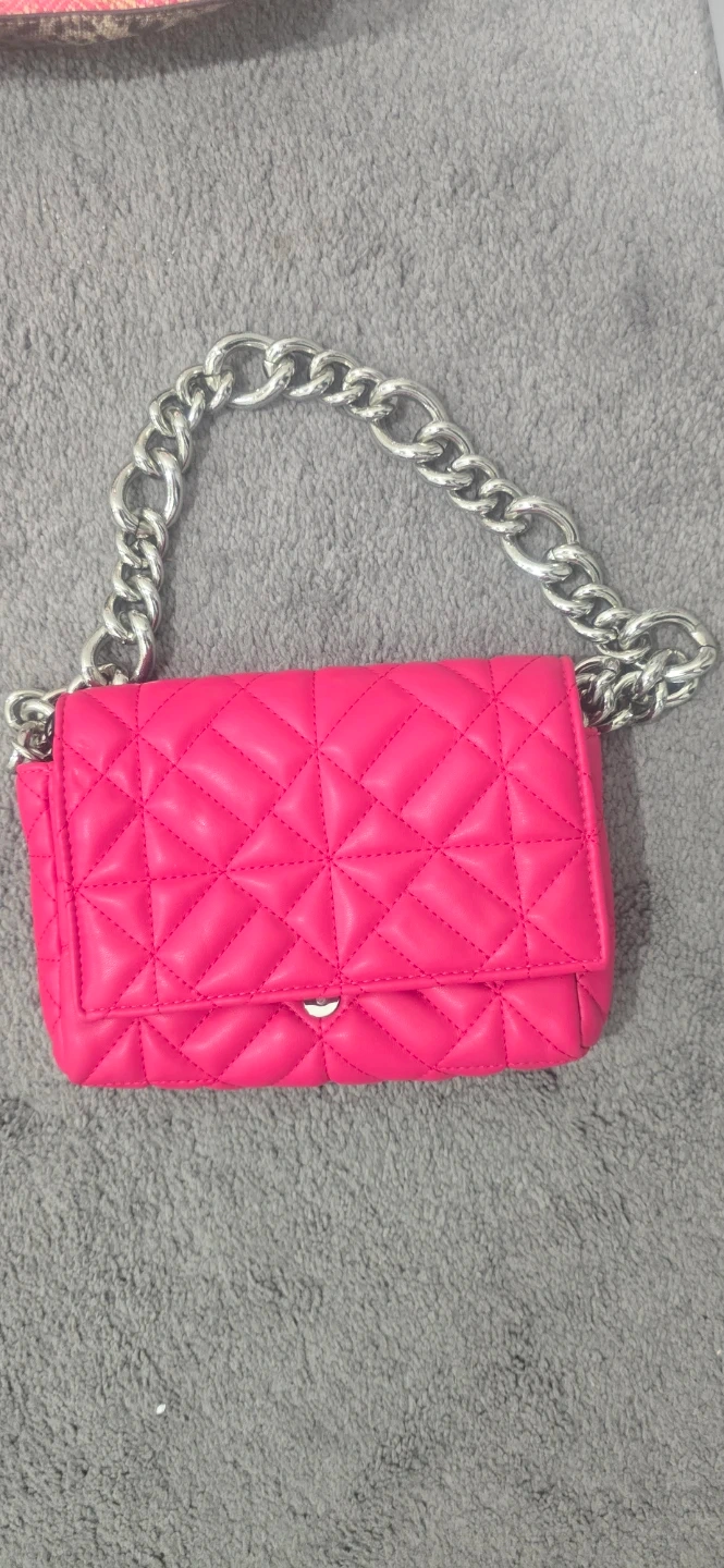 Selling a vibrant pink quilted bag from Zara! It features a silver chain strap and a quilted design. Perfect for adding a pop of colour to any outfit