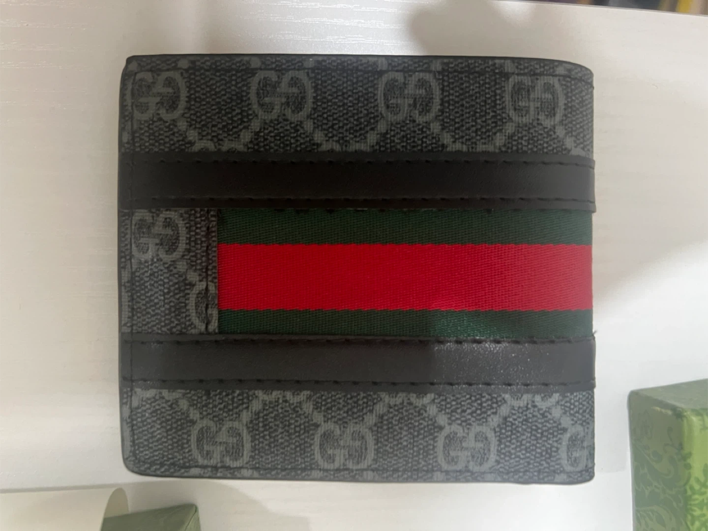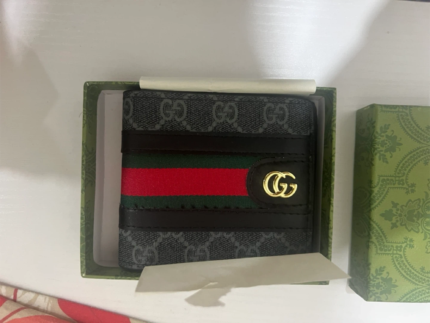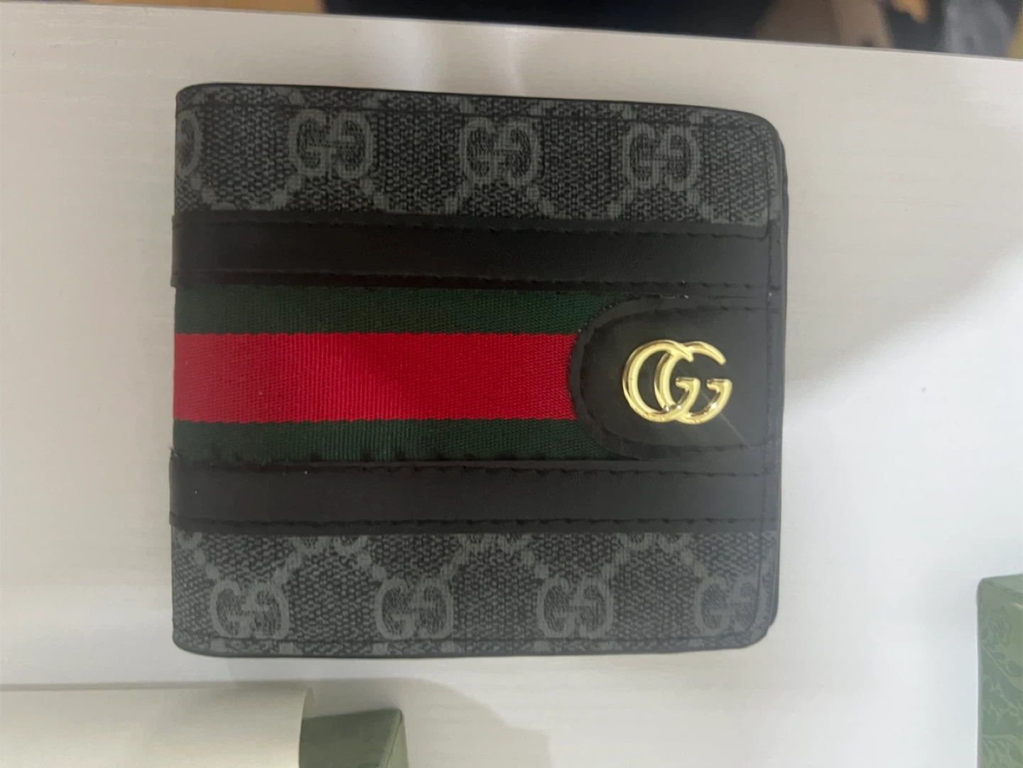 Selling a Gucci wallet that's in great shape! It comes with its original box, so it's perfect if you're looking for a stylish and complete package. The wallet features the iconic Gucci design with the classic stripe. It's a great accessory to keep your cards and cash organized