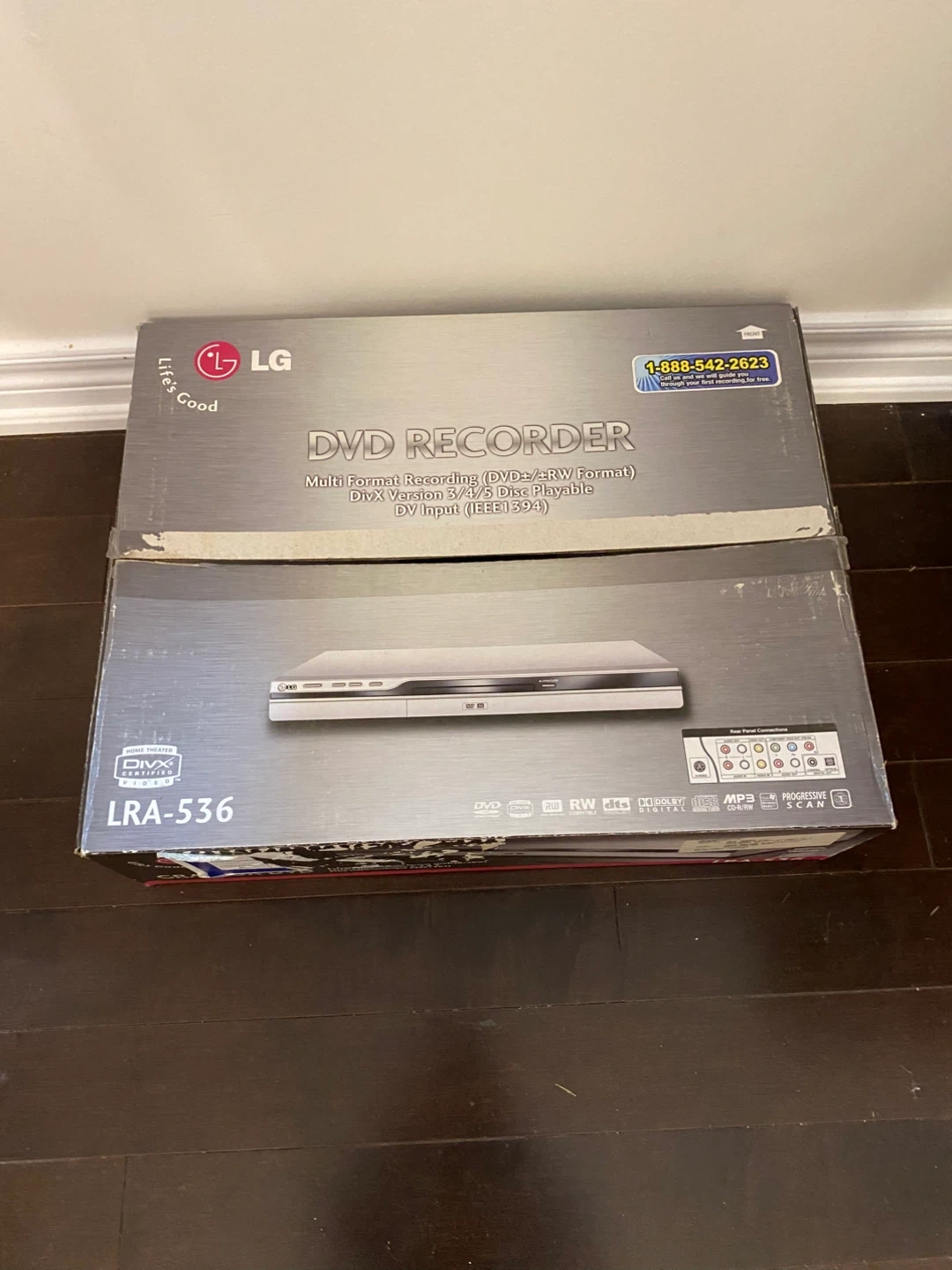 LG DVD Recorder, model LRA-536. It supports multi-format recording (DVD+-RW Format) and is DVD/VCD/CD/MP3 Disc Playable. It also has DV Input (IEEE1394).