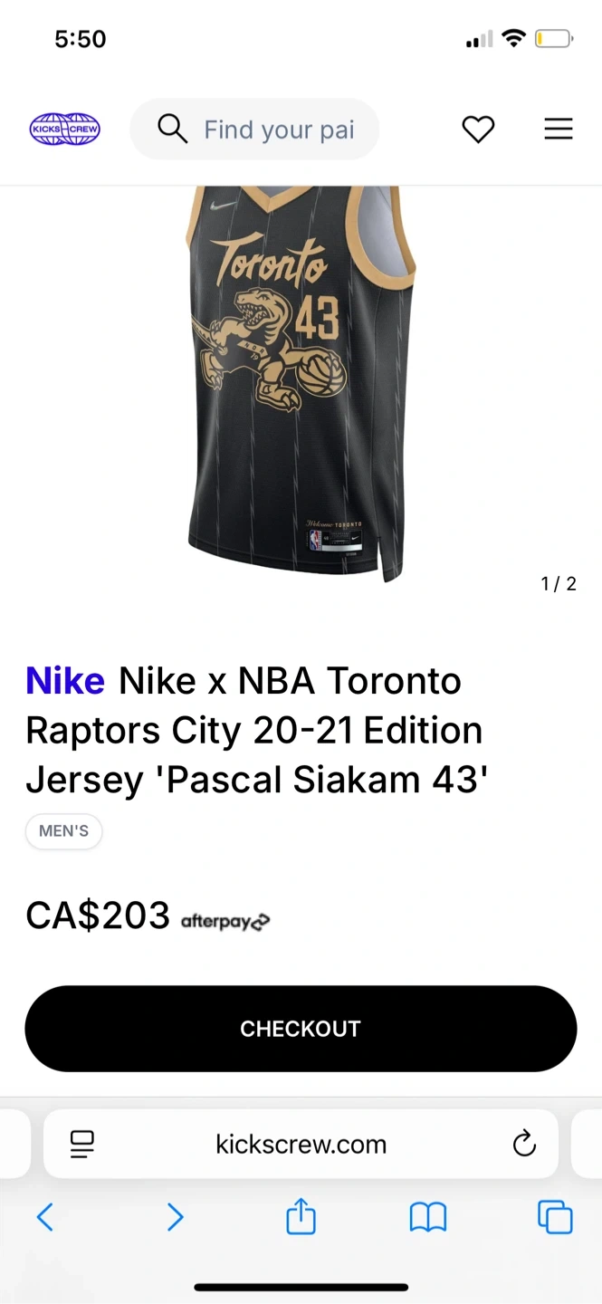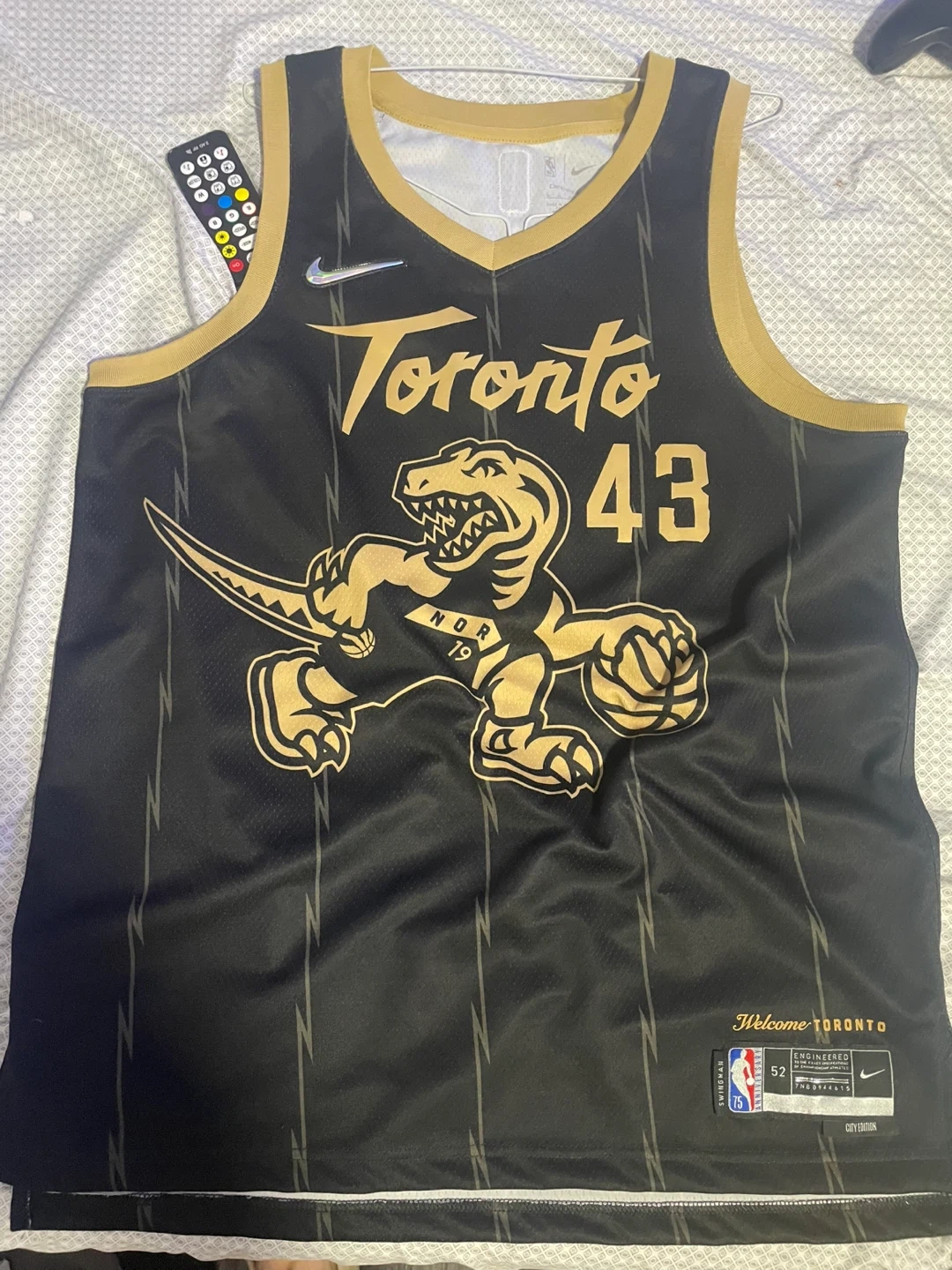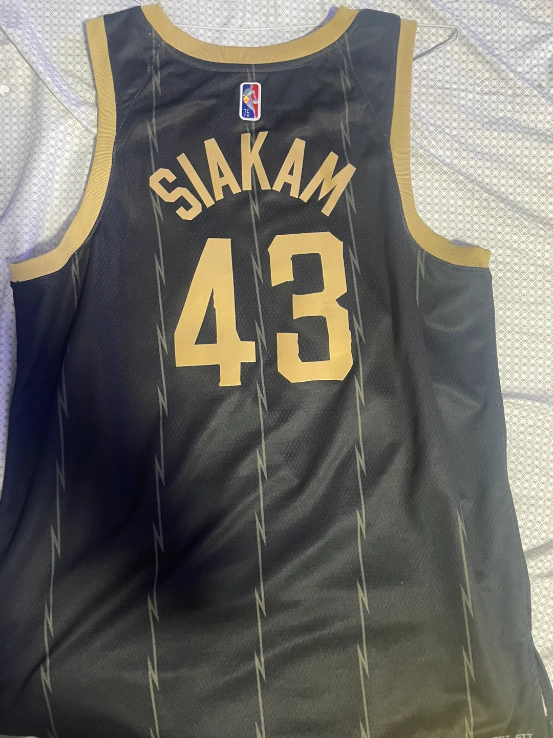 Selling a Nike NBA Toronto Raptors City Edition 20-21 Pascal Siakam 43 jersey. The jersey is black and gold, featuring the Raptors logo and Siakam's number. Originally bought for $203!