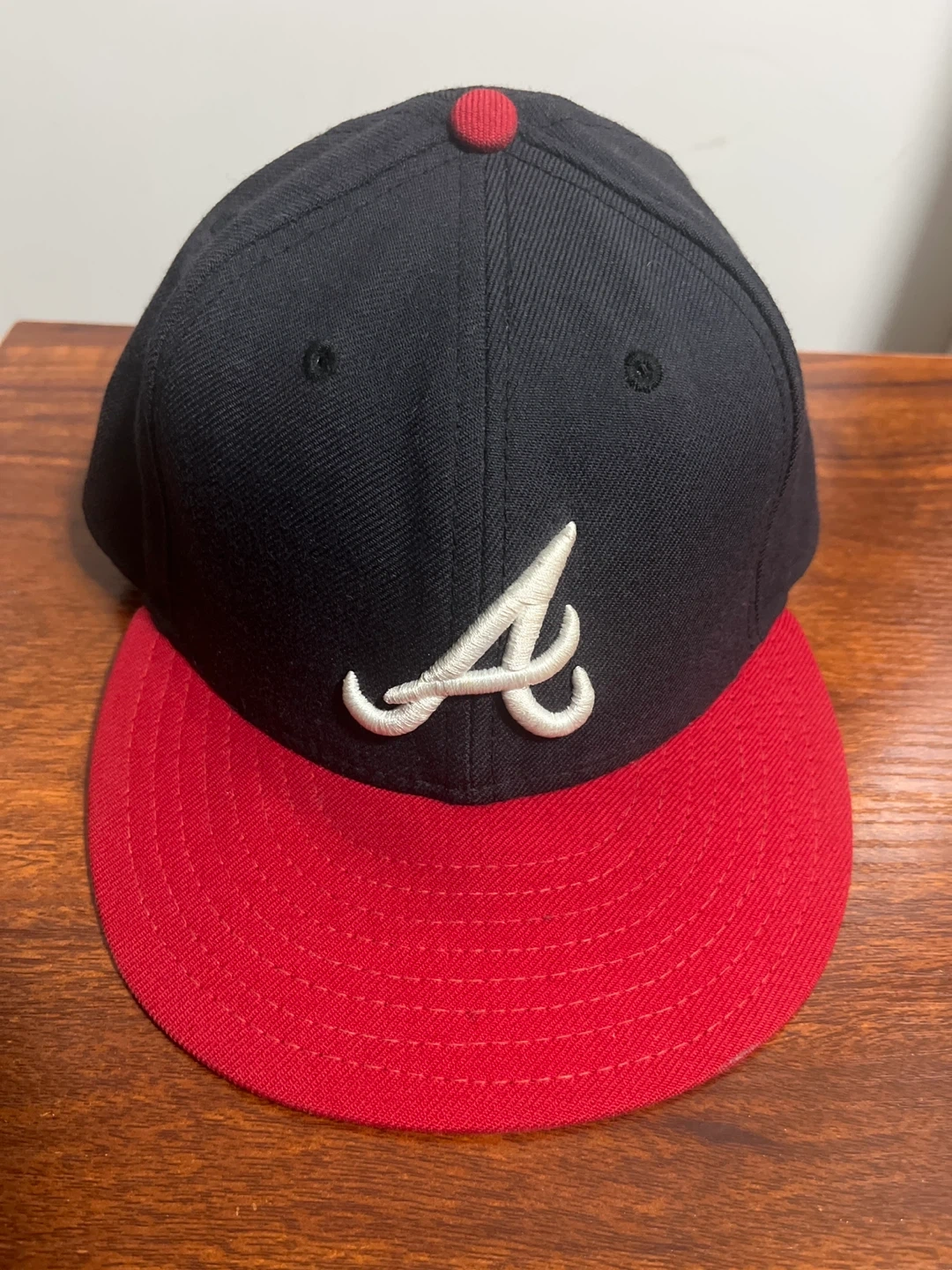 Selling a New Era 59FIFTY fitted hat featuring the Atlanta Braves logo. It's a classic black and red colourway. The hat is in great condition and ready for a new fan!