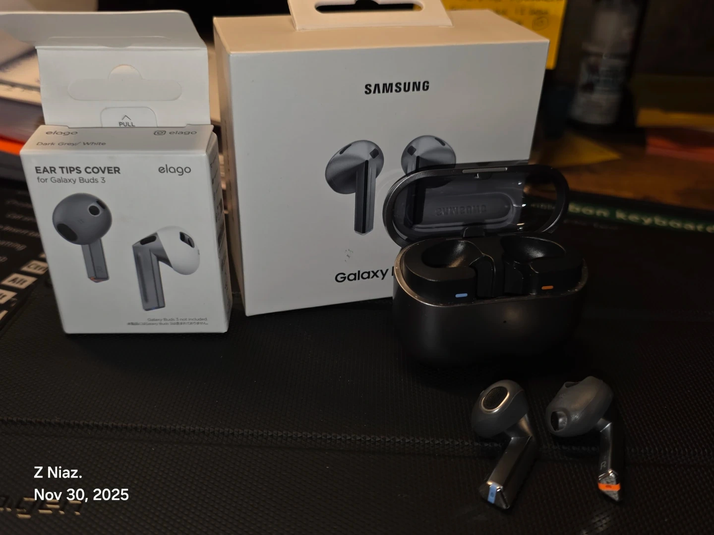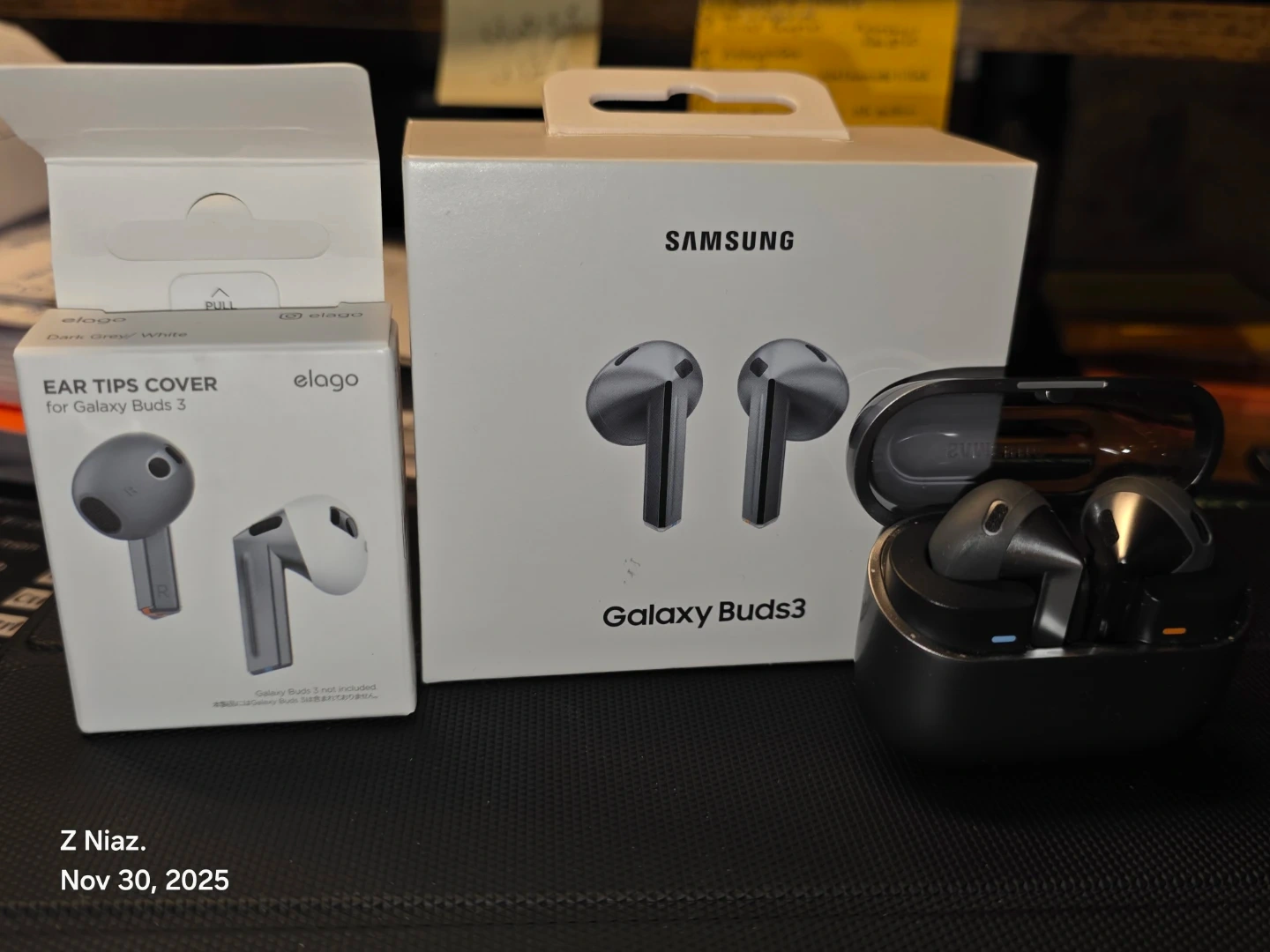 Selling a pair of Samsung Galaxy Buds3, complete with the original box. Also included are Elago ear tip covers for the Buds3. They're in great shape and ready for a new user!