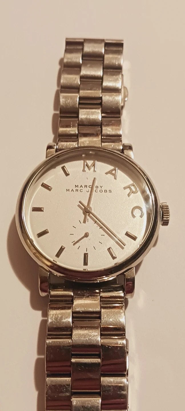 Marc by Marc Jacobs Ladies Baker Silver Stainless Steel Chronograph Watch. Excellent condition, but needs a new battery !! Selling as is !! ALL MY PRICES ARE NEGOTIABLE !!