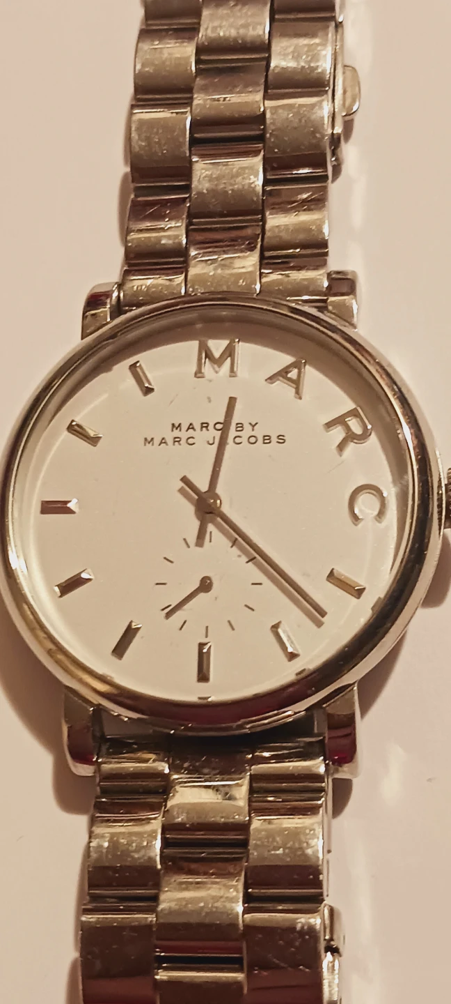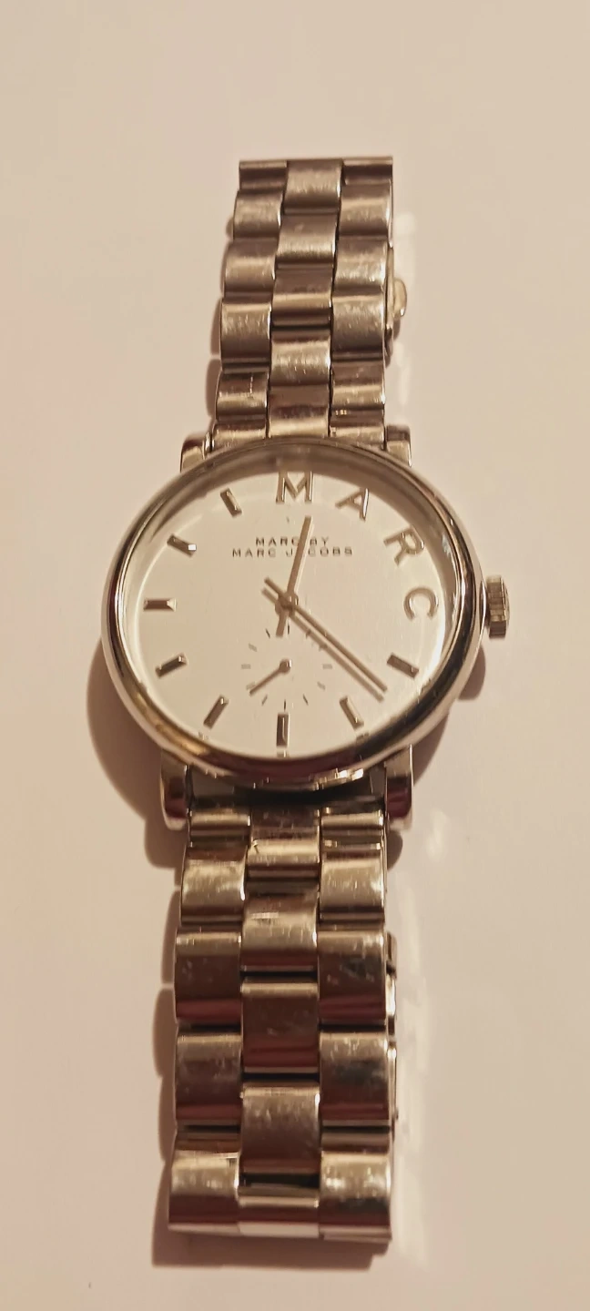 Marc by Marc Jacobs Ladies Baker Silver Stainless Steel Chronograph Watch. Excellent condition, but needs a new battery !! Selling as is !! ALL MY PRICES ARE NEGOTIABLE !!