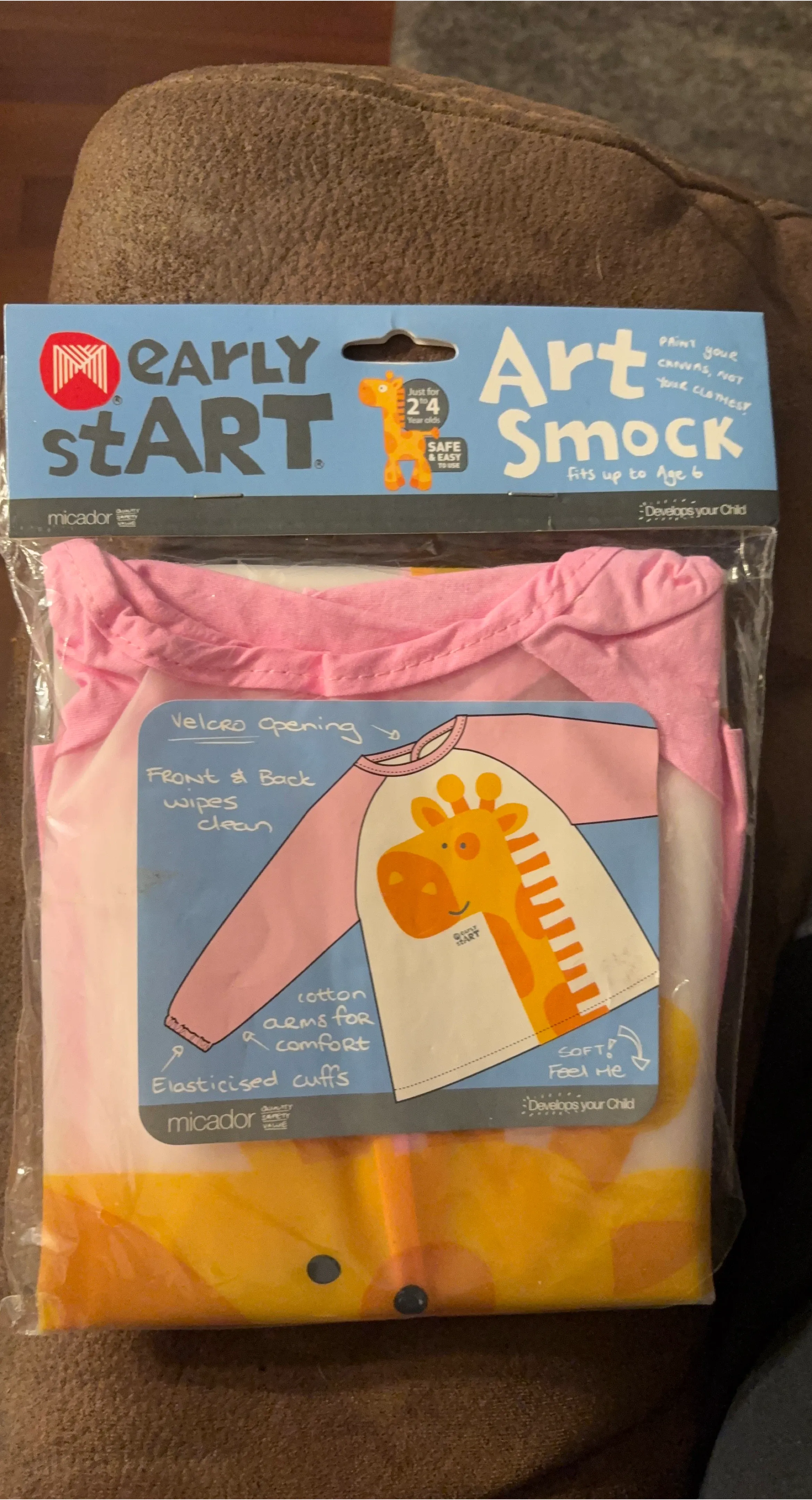 Keep your little one's clothes clean with this handy art smock from Early Start! This smock is brand new and still in its original packaging. It's designed for children ages 2-6 years old. Features include: