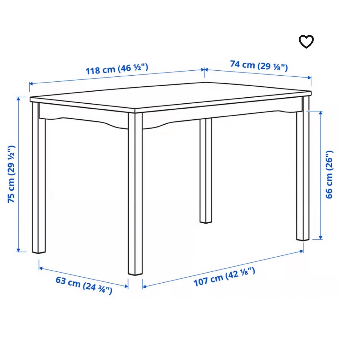- 74 cm (29 1/8") width