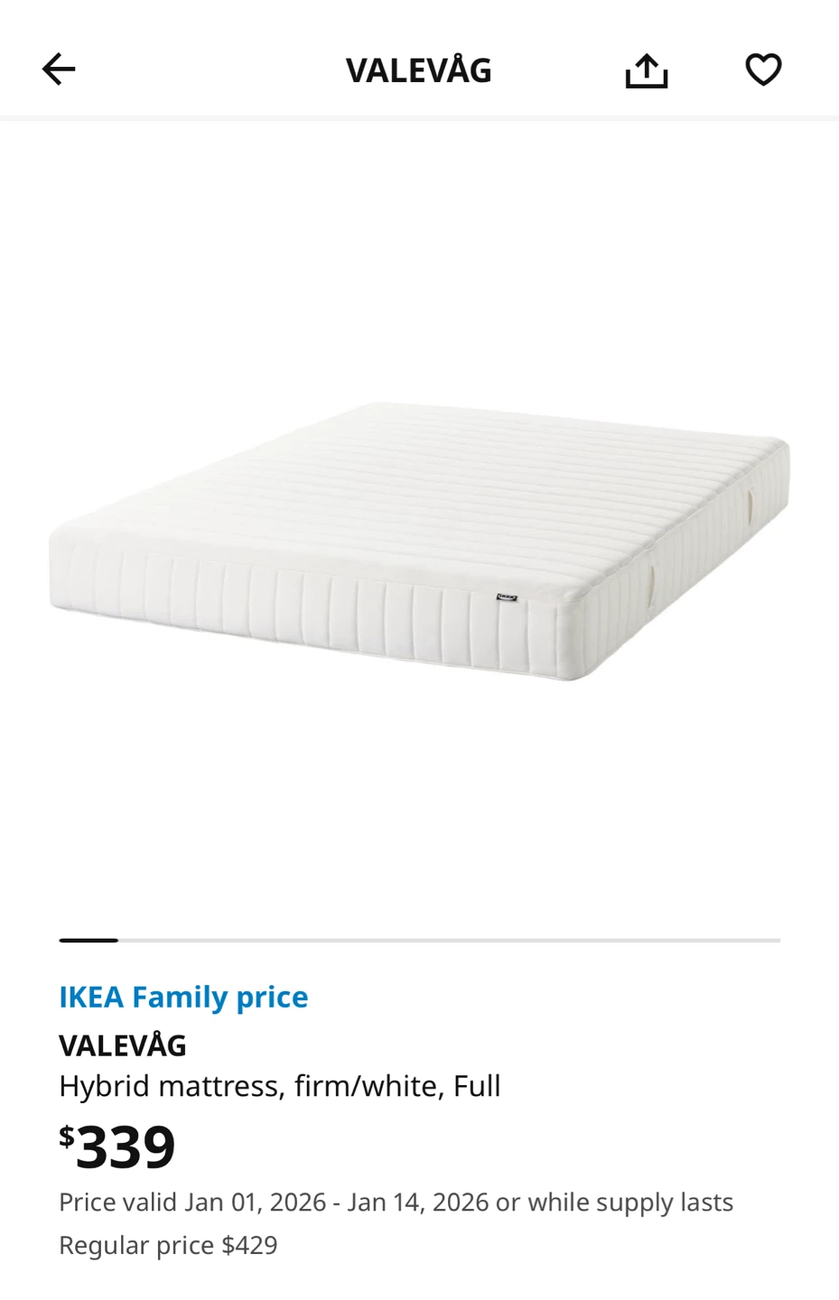 Selling an IKEA VALEVÅG hybrid firm mattress in full size.