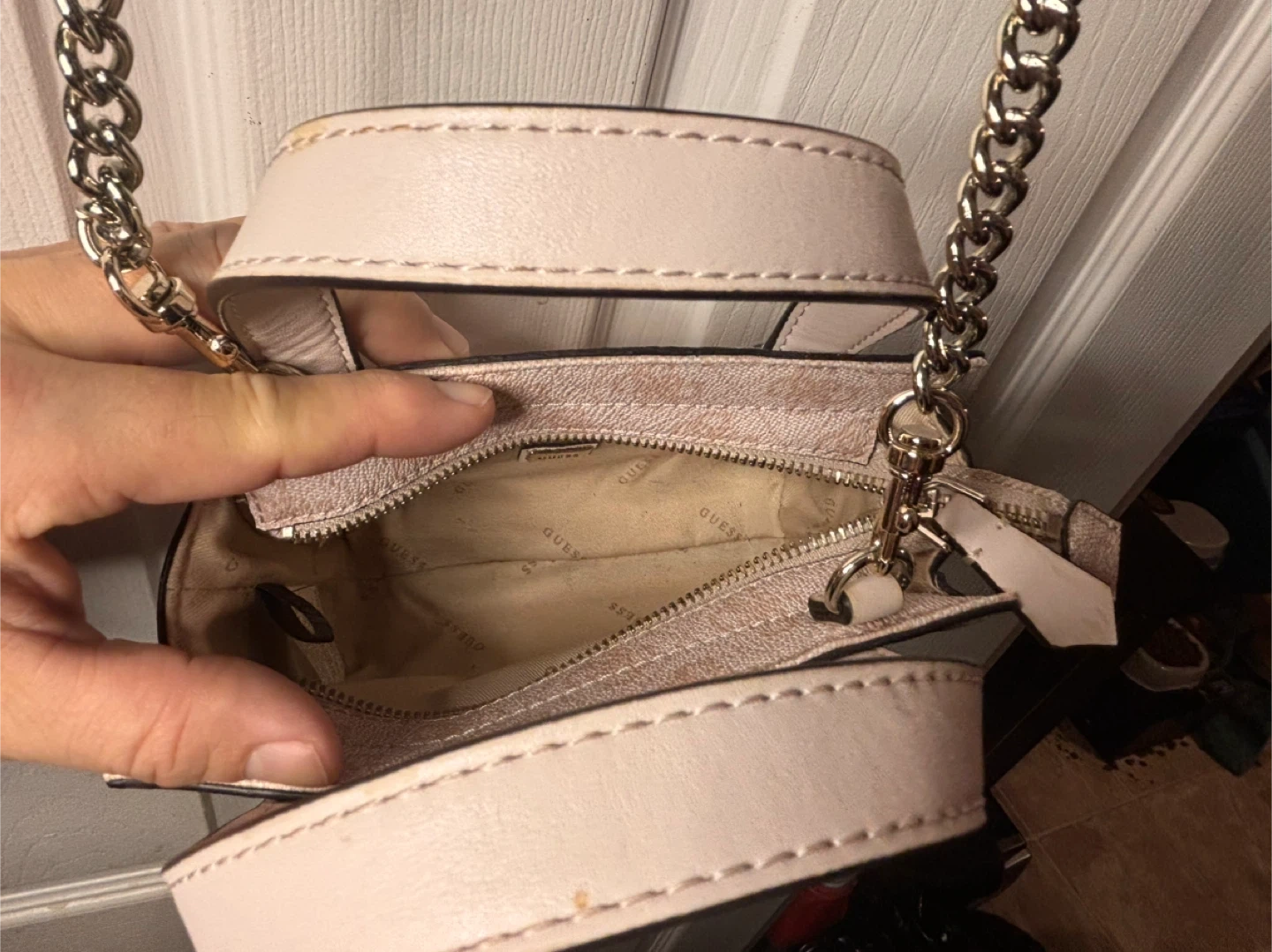 This purse was purchased in 2018 and has been barely used, so it is in excellent condition with clean corners, a fresh interior, and no stains or damage. The light neutral colour makes it easy to pair with any outfit, while the classic GUESS monogram keeps it stylish and timeless.