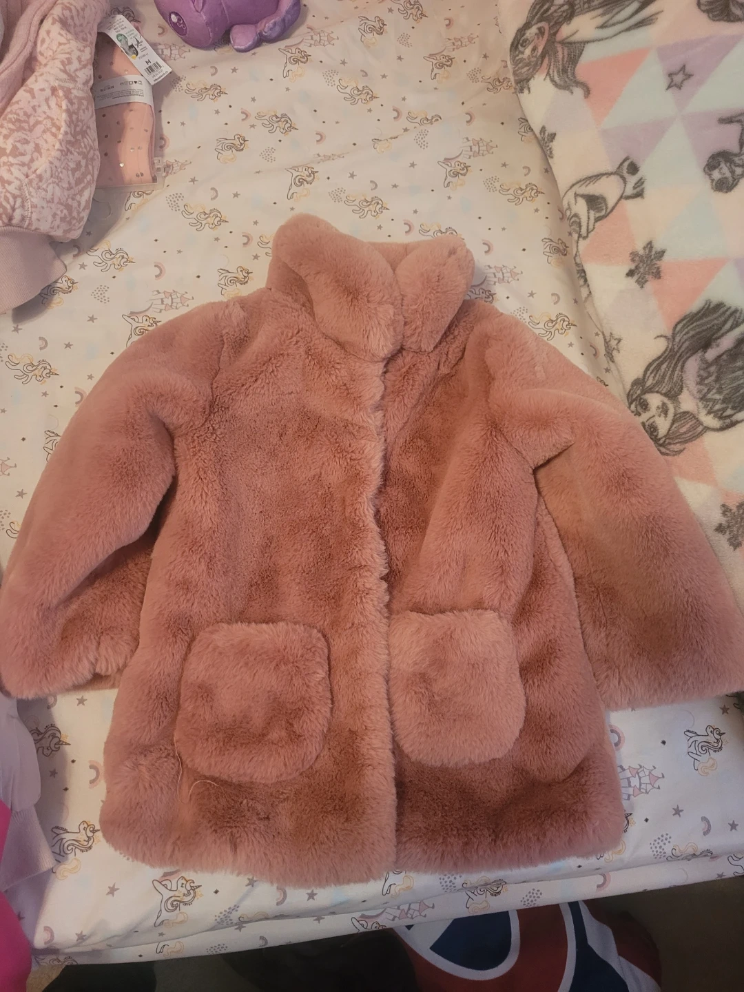 H&M Used Pink Faux Fur Jacket - Size 3T