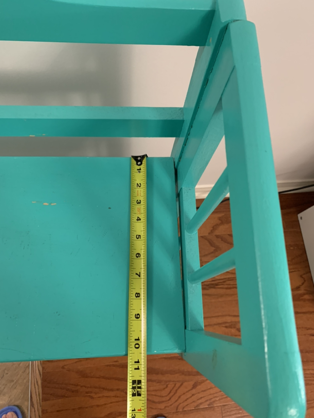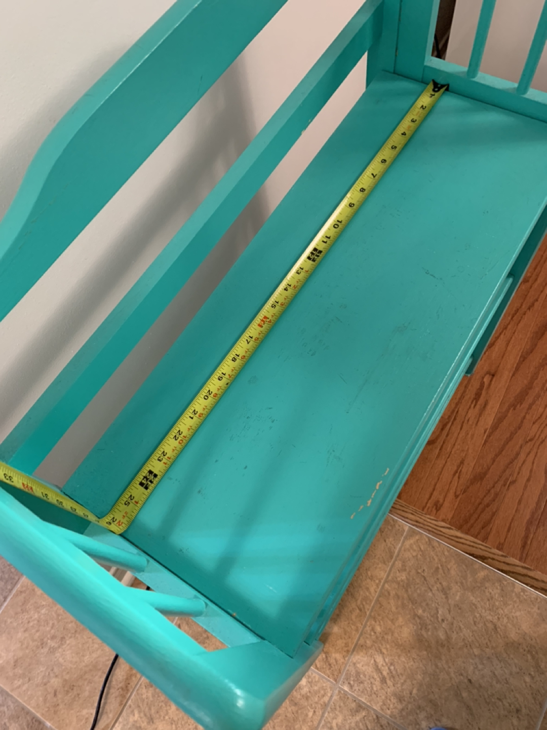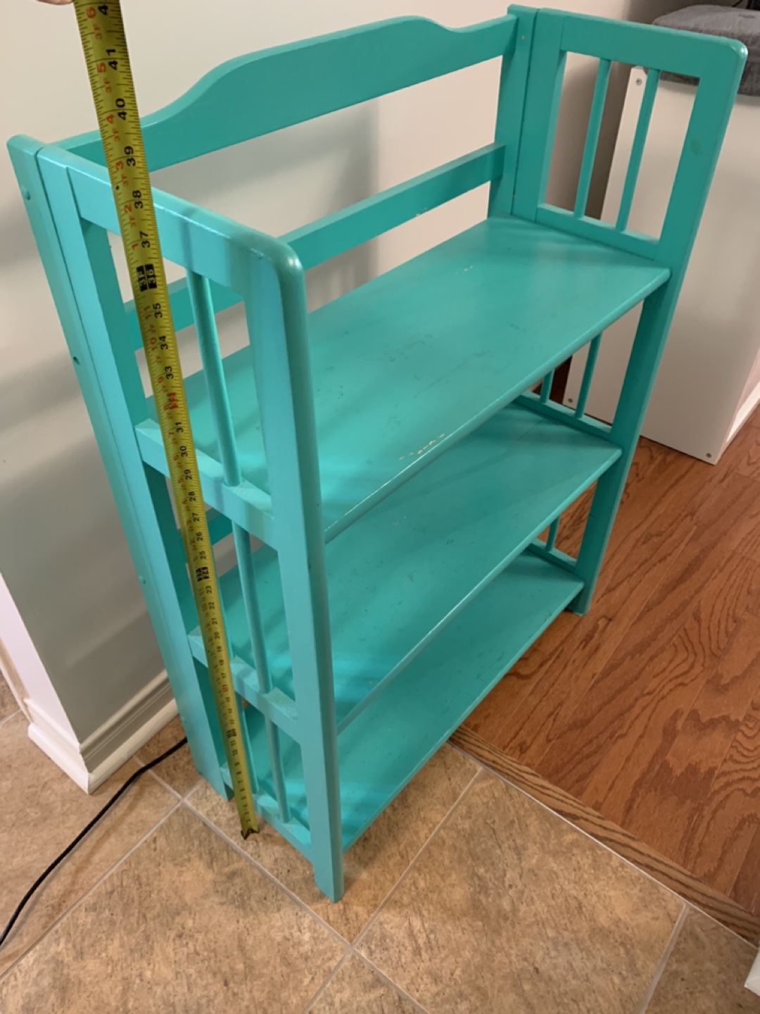 696Hand Made of 100% solid wood Classic styling Torquois Paint No assembly required Foldable for storage/transport Dimensions: 38-inch h by 11-1/2-inch l by 27-1/2-inch w Selling because we are moving!