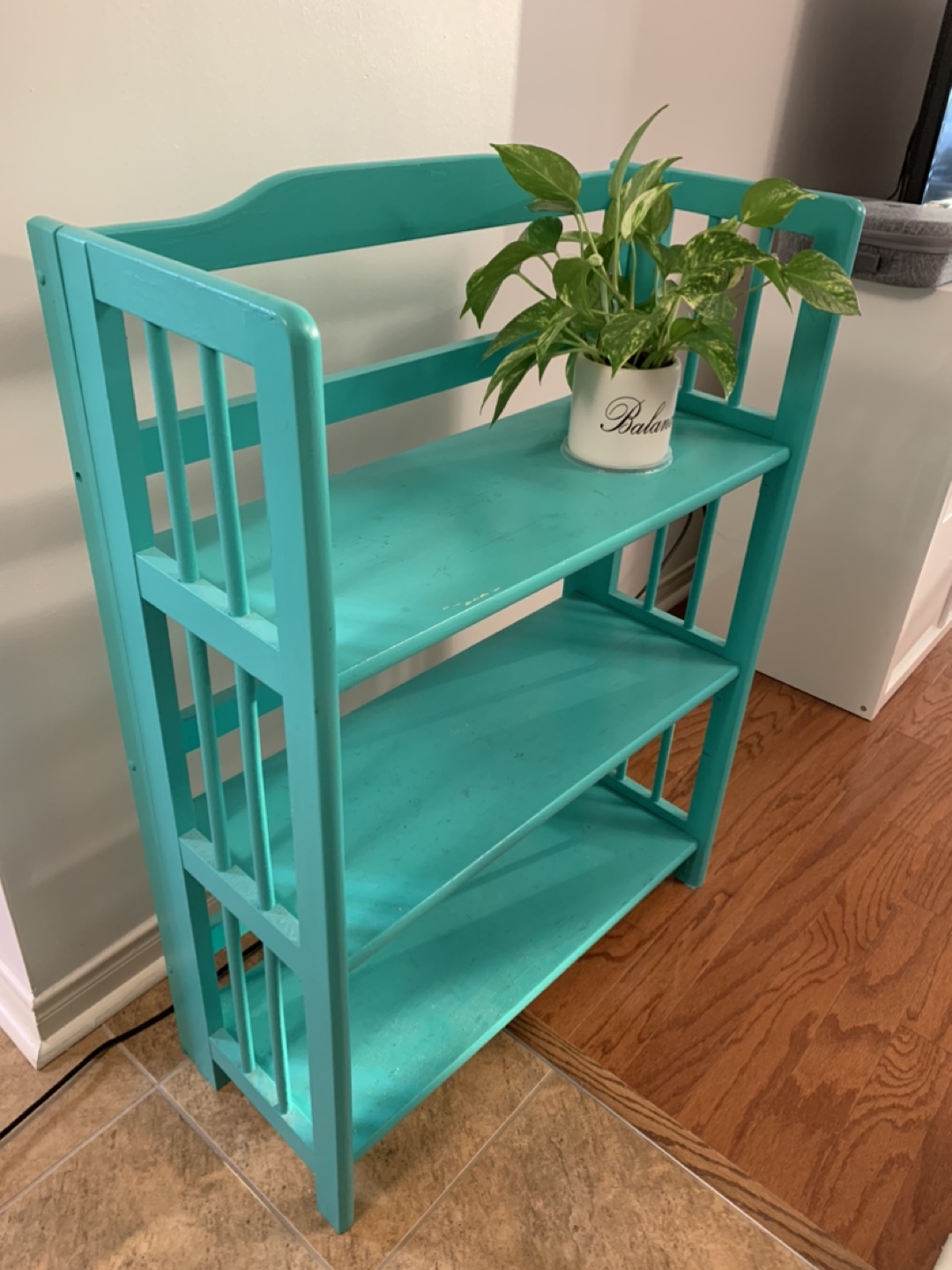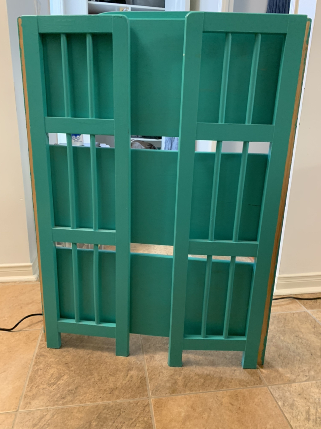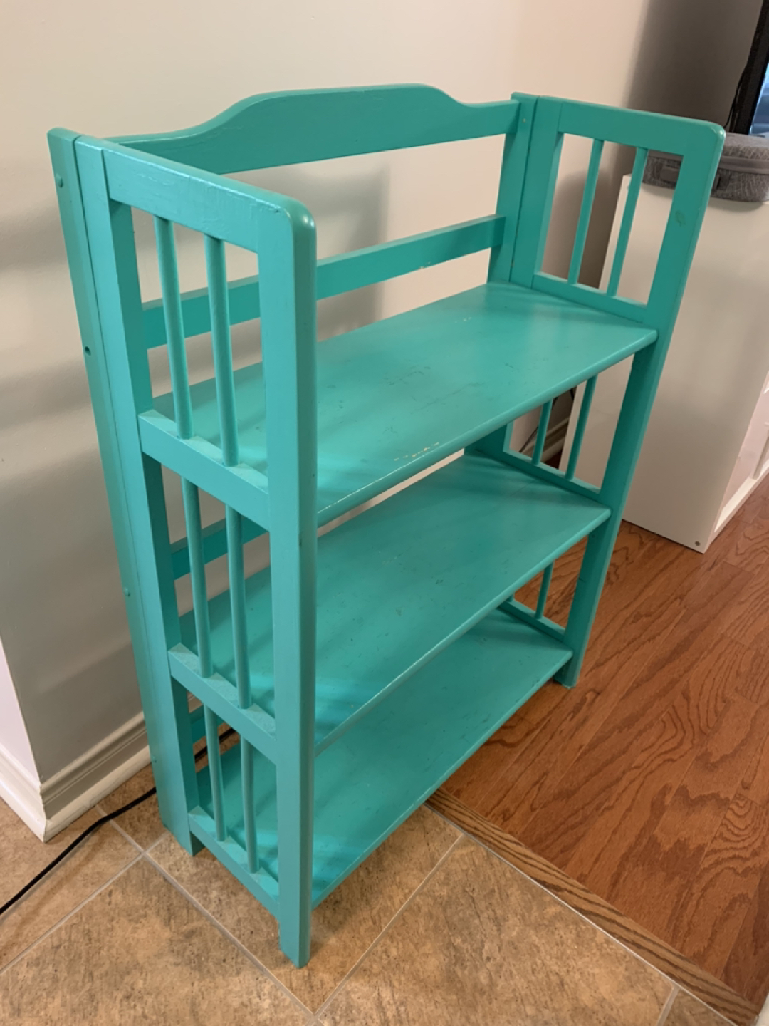 696Hand Made of 100% solid wood Classic styling Torquois Paint No assembly required Foldable for storage/transport Dimensions: 38-inch h by 11-1/2-inch l by 27-1/2-inch w Selling because we are moving!
