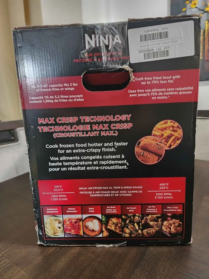 New NINJA AIRFRYER MAX XL (5.5QT Capacity). Never been used and comes in the original box and packaging. Pick up in Oshawa.