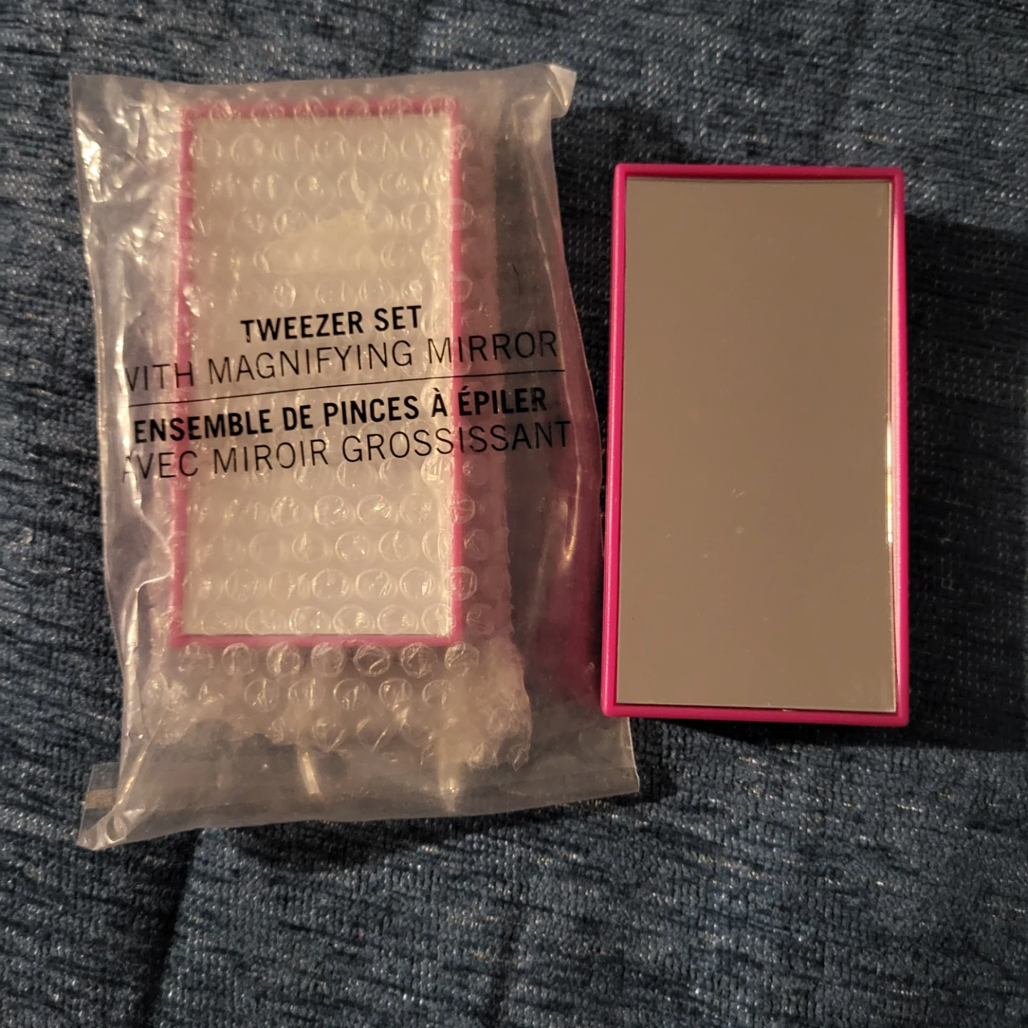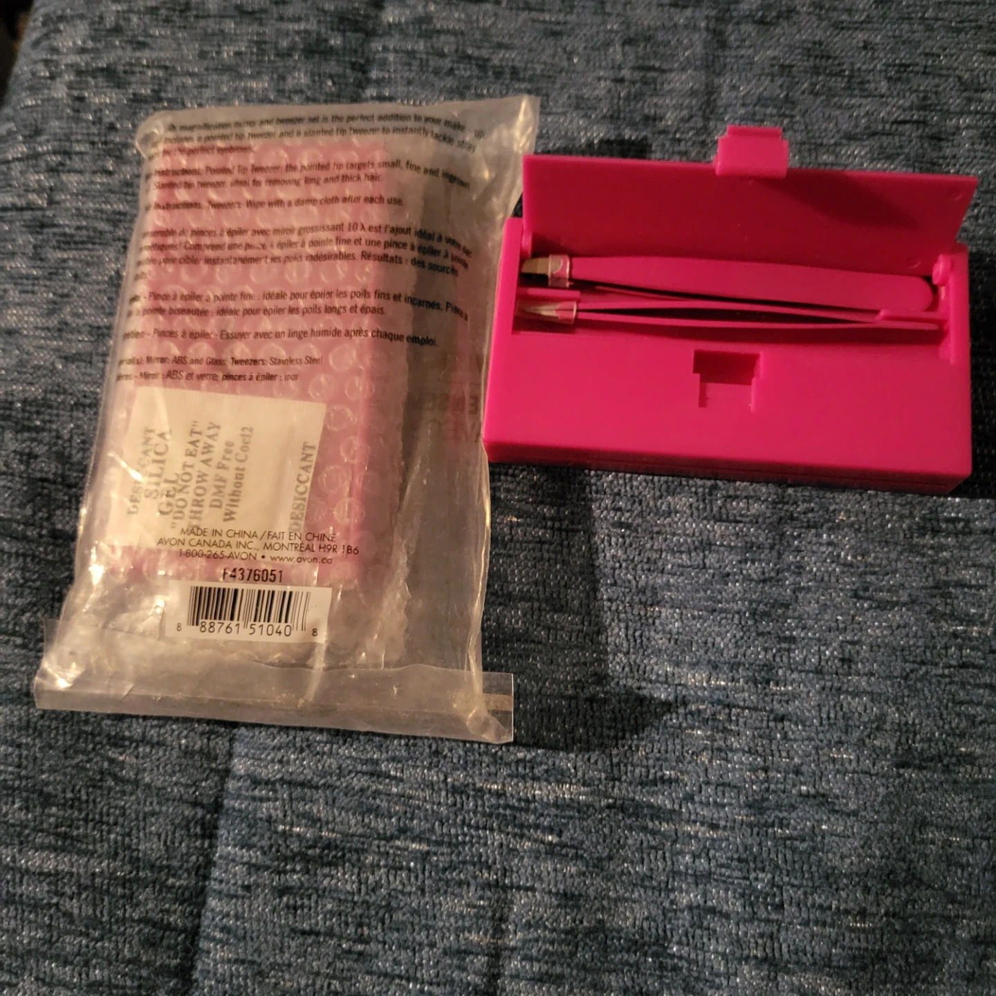 Selling a brand new Avon tweezer set with magnifying mirror! It comes in its original packaging. The set includes tweezers, and a mirror, perfect for on-the-go touch-ups