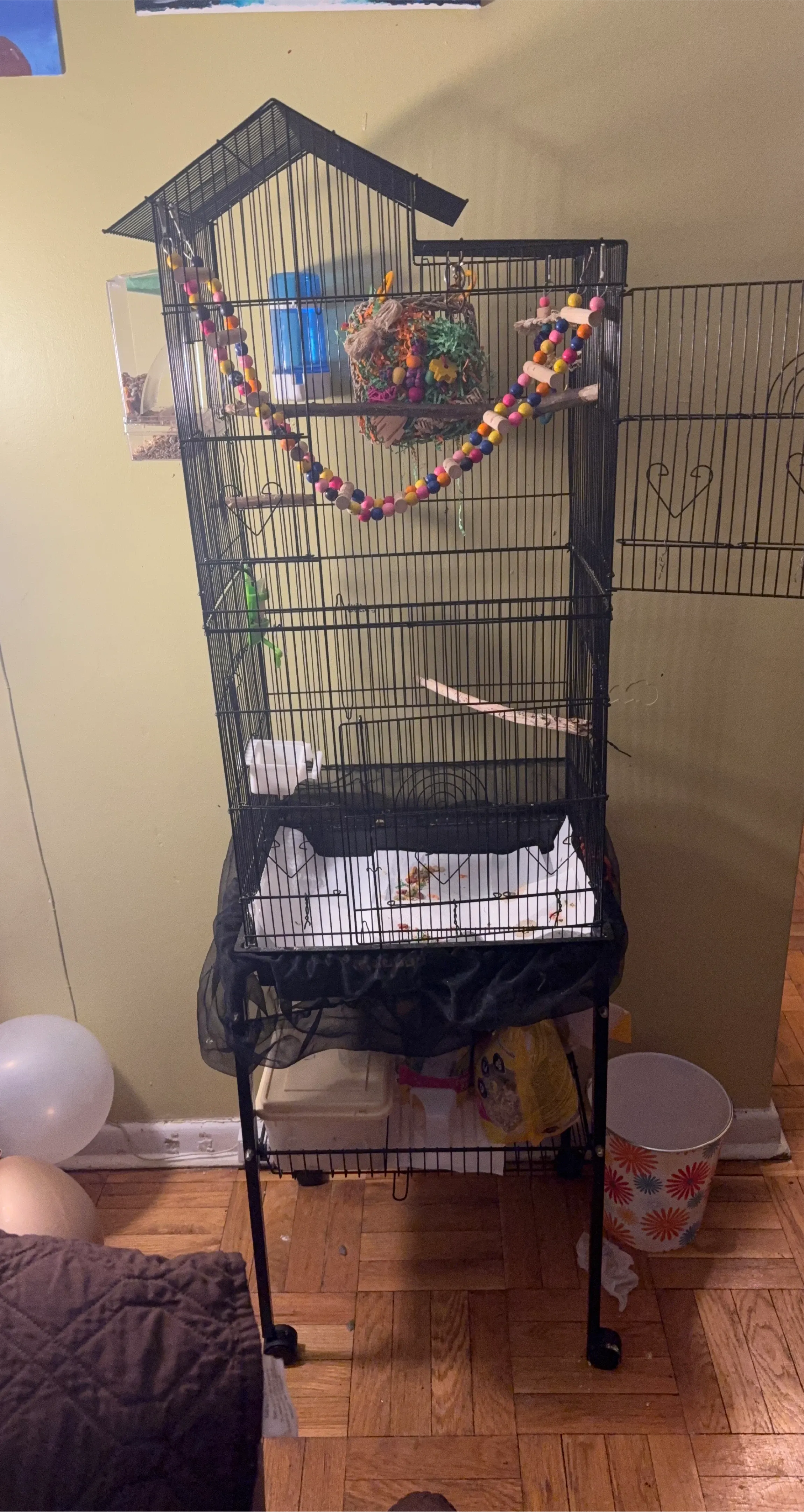 Selling a gently used bird cage in great condition! It's black and features a rolling stand for easy movement. Dimensions: Height: 39 inches Width: 17 inches Depth: 13 inches Bar spacing is 0.4 inches Bird Cage Stand with Shelf in Black. Size inside - 12.6/17.12 inch. Pick up from Keele and Eglinton west on Trethewey rd. $130.00 ,