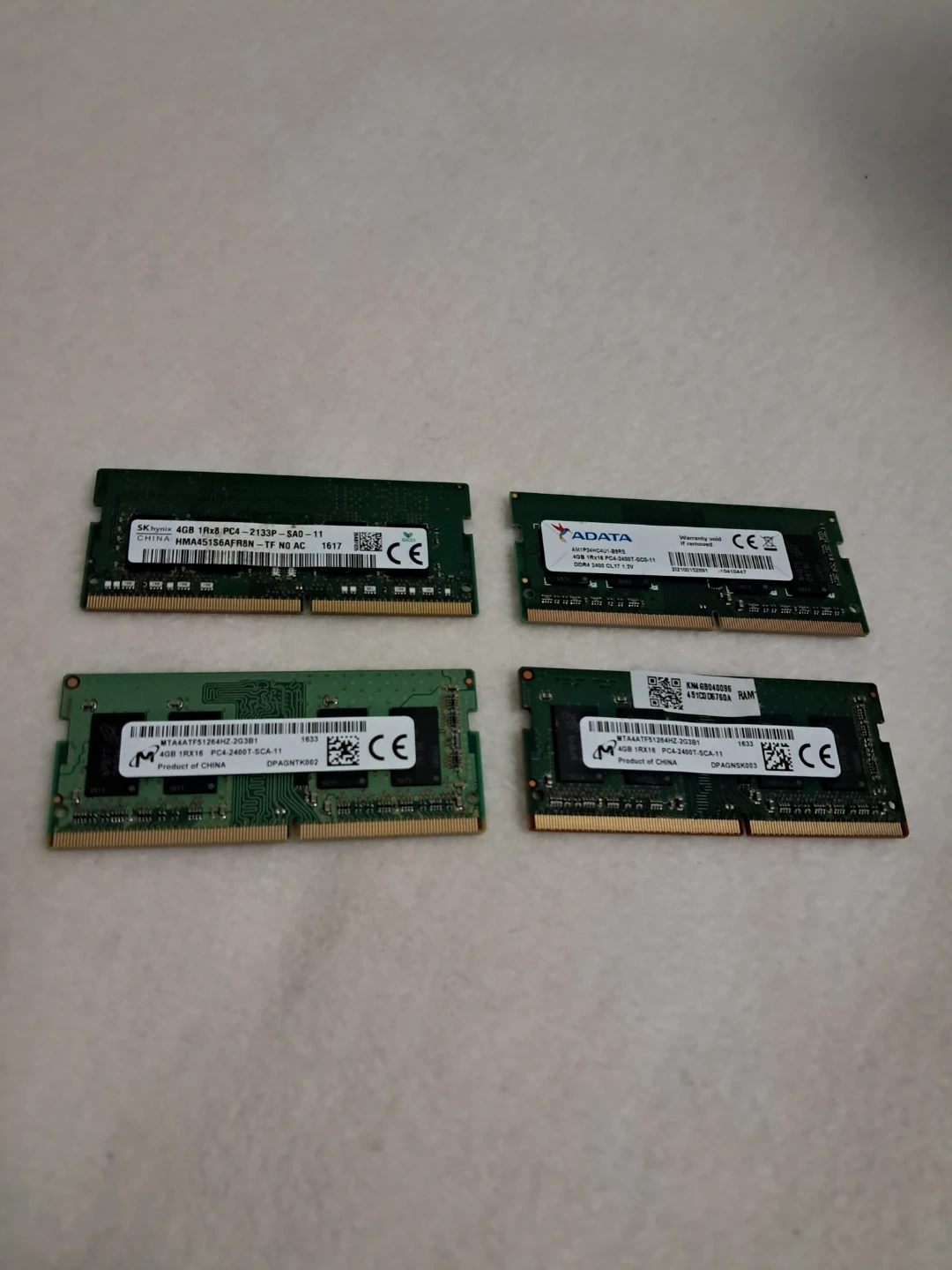 Selling a collection of 4GB PC4 RAM sticks from various brands: ADATA, SK Hynix, and Micron. They're in good working condition and ready to be used in your system