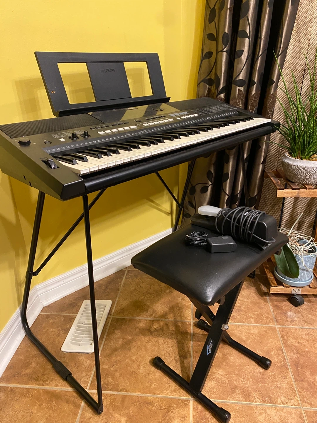 Selling a keyboard stand and bench! It comes with a music score stand. Perfect for practicing or performing. It's in great shape and ready for a new musician