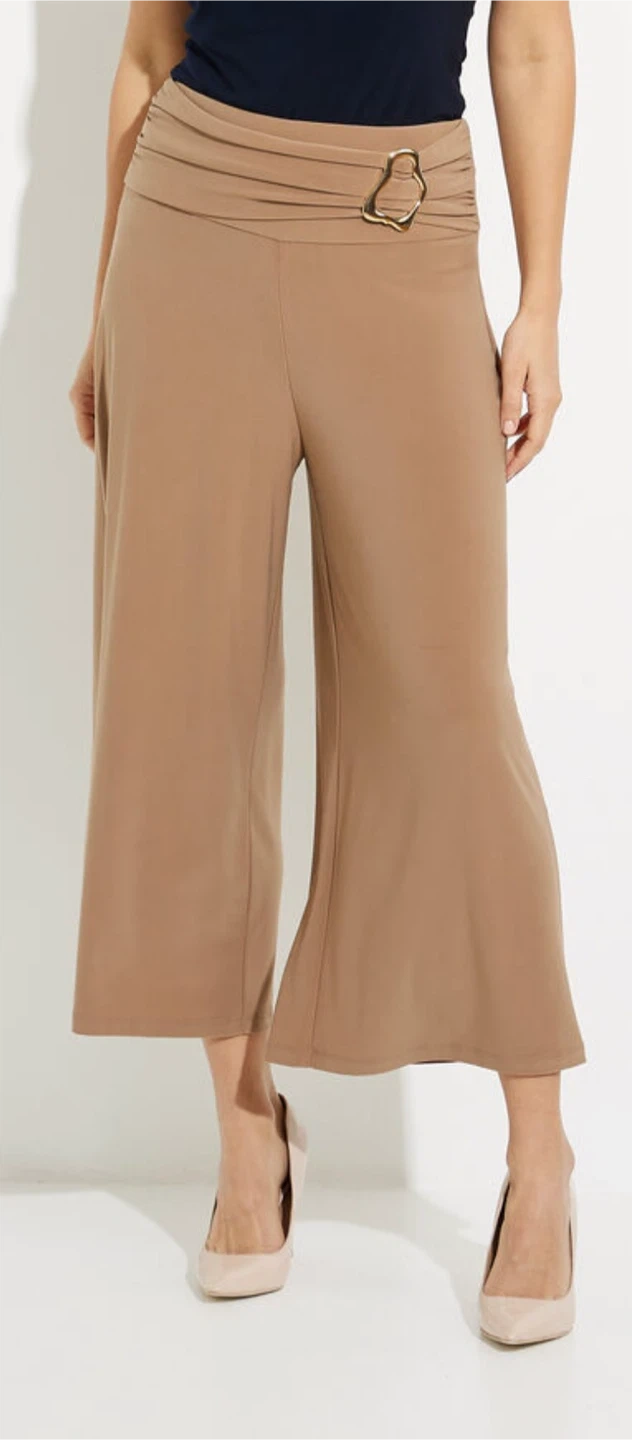 Spring calls for charming culottes, like these Joseph Ribkoff cropped pants. Their high-rise, elasticized waist provides you with day-long comfort while their roomy wide leg cut elongates your legs. A hardware accent at the waist works some serious shine into your ensemble.