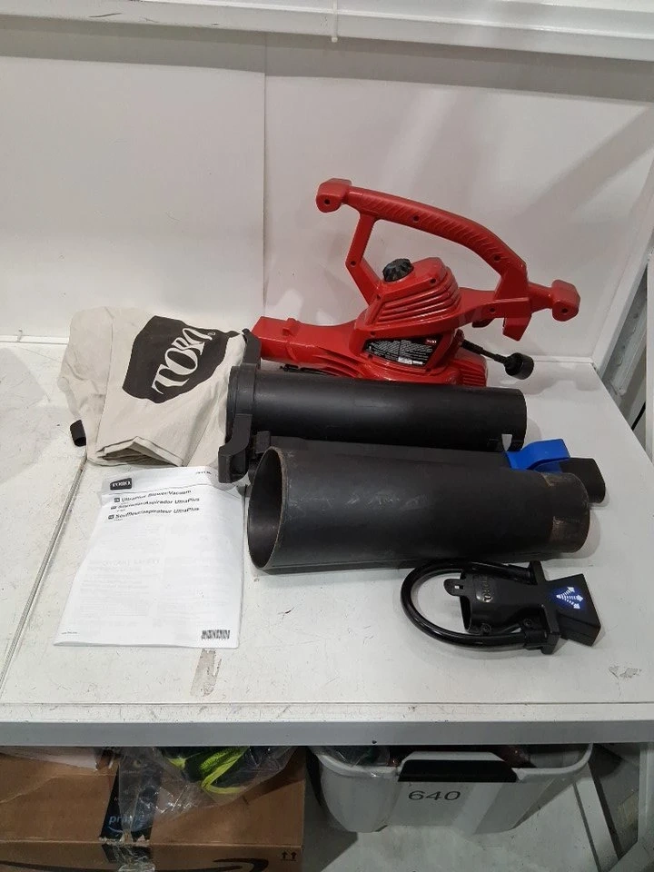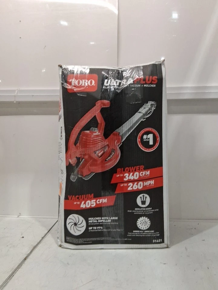 Retails for $195 on Amazon! Keep your yard tidy with this Toro UltraPlus 51621 leaf blower, vacuum, and mulcher. This corded electric tool features a powerful 12 amp motor, variable speed control up to 260 mph, and a metal impeller for superior mulching. It includes a vacuum tube, bottom-zip bag, cord storage hook, and oscillating tube, and it's ready to tackle leaves, debris, and more. This tool has been well-cared for and is in good condition. Key features: - Brand: Toro - Model: UltraPlus 51621 - Type: Leaf Blower/Vacuum/Mulcher - Power Source: Corded Electric - Voltage: 120V - Amperage: 12 Amp - Max Air Speed: Up to 260 mph - CFM: 340 CFM (blow mode), 405 CFM (vac mode) - Special Feature: Variable Speed Control - Accessories Included: Vacuum tube, bottom-zip bag, cord storage hook, shred-all shred ring, oscillating tube If you are reading this, the leaf blower is available. You never know, it might blow you away!
