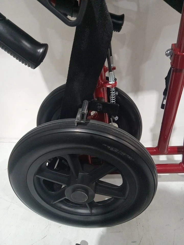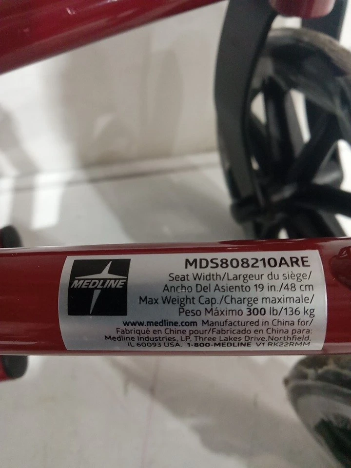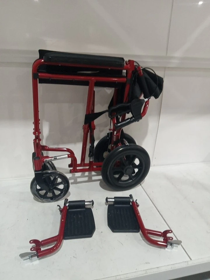 This Medline Basic Aluminum Transport Wheelchair features a 19" seat and 12" rear wheels, making it easy to maneuver, while supporting up to 300 lbs. This wheelchair is in its original box.