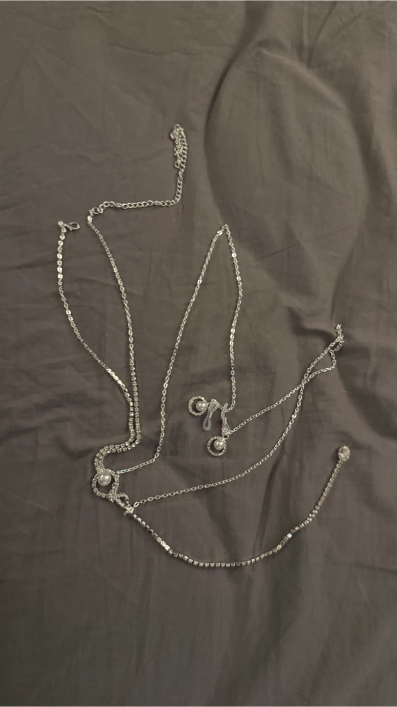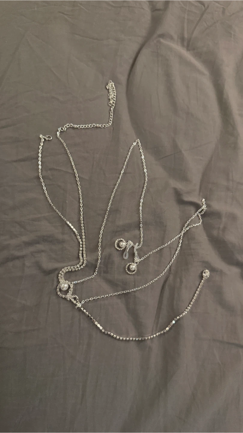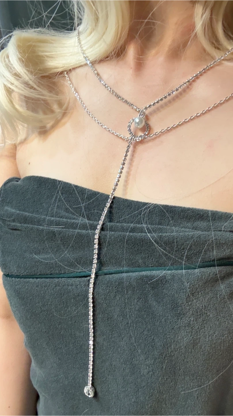 Selling a silver rhinestone body chain, perfect for adding a bit of sparkle to your outfit! It's in great condition and ready for a new owner