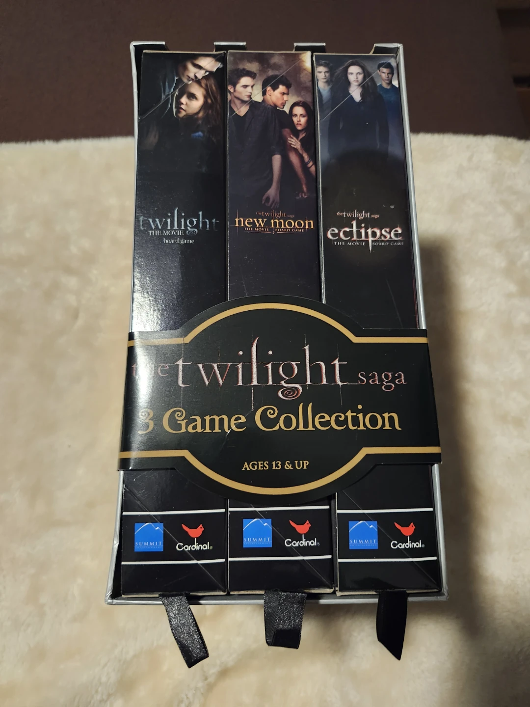 Selling a brand new Twilight Saga 3 Game Collection! This set includes board games based on the movies Twilight, New Moon, and Eclipse. Recommended for ages 13 and up, it's perfect for fans of the series looking for a fun game night