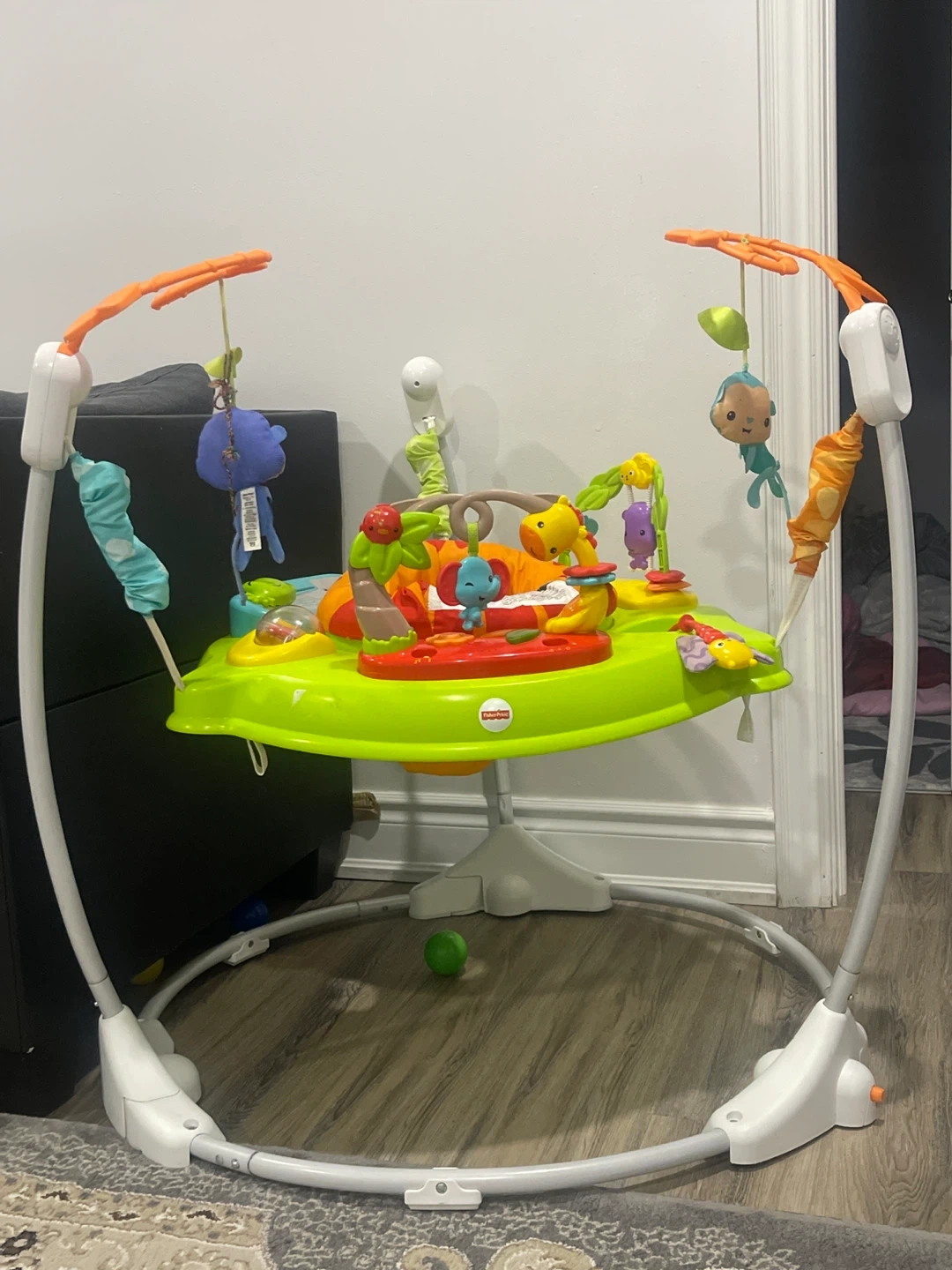 Selling a gently used Fisher-Price Jumperoo! It's in great condition and ready for a new little one to enjoy. It's bright, colourful, and features lots of fun toys to keep baby entertained. Recommended for ages 6 months and up, or until baby is walking!