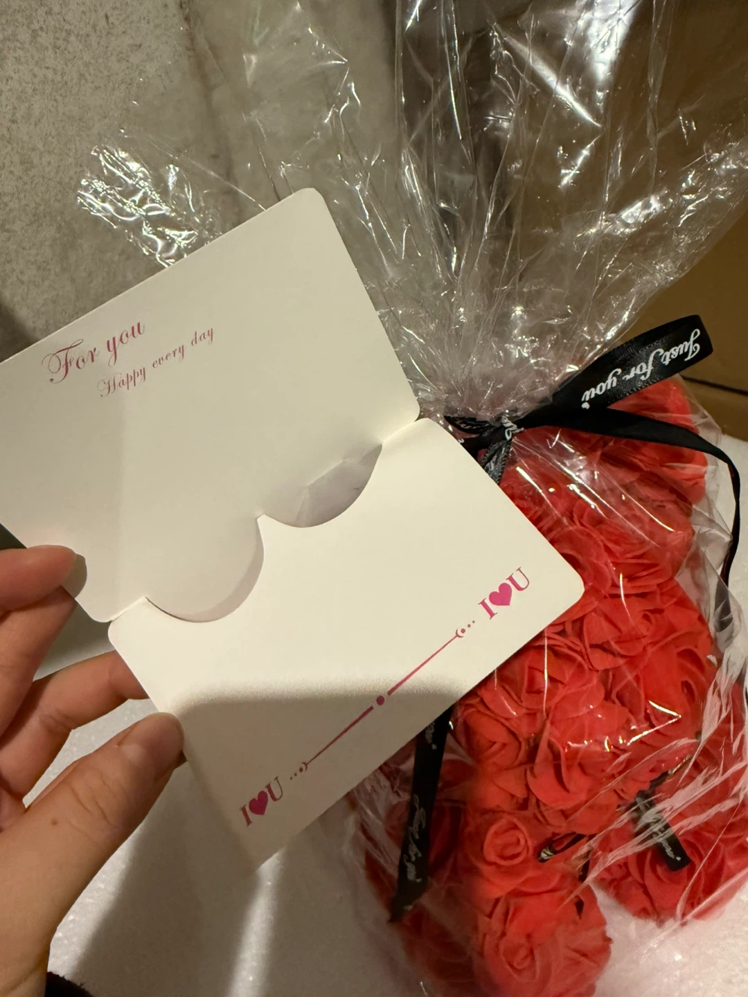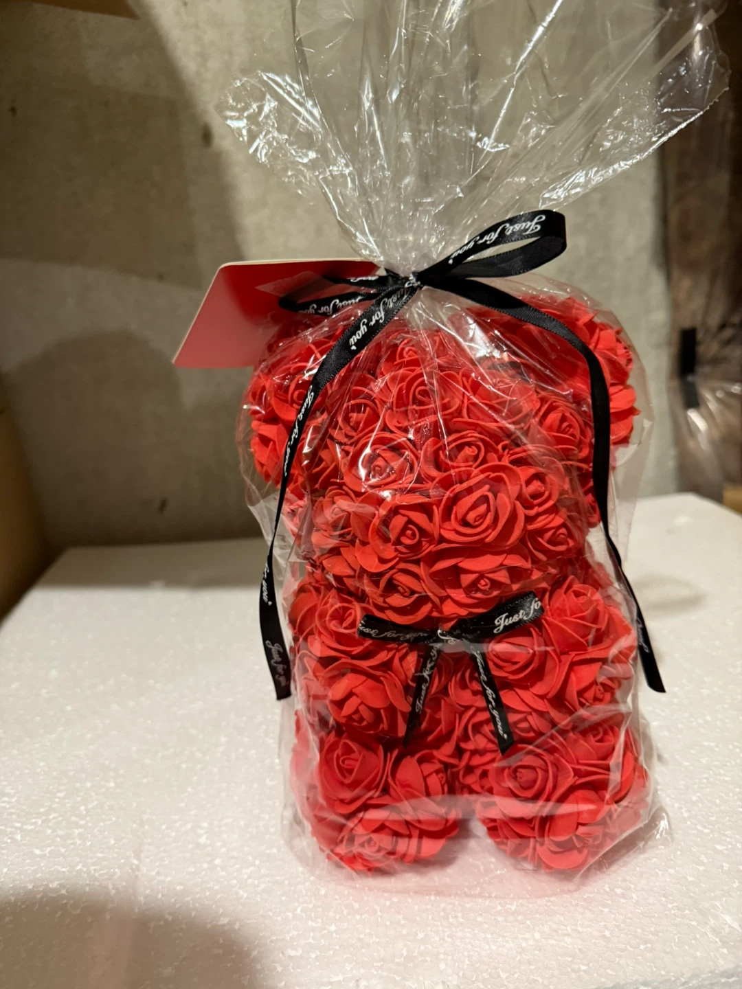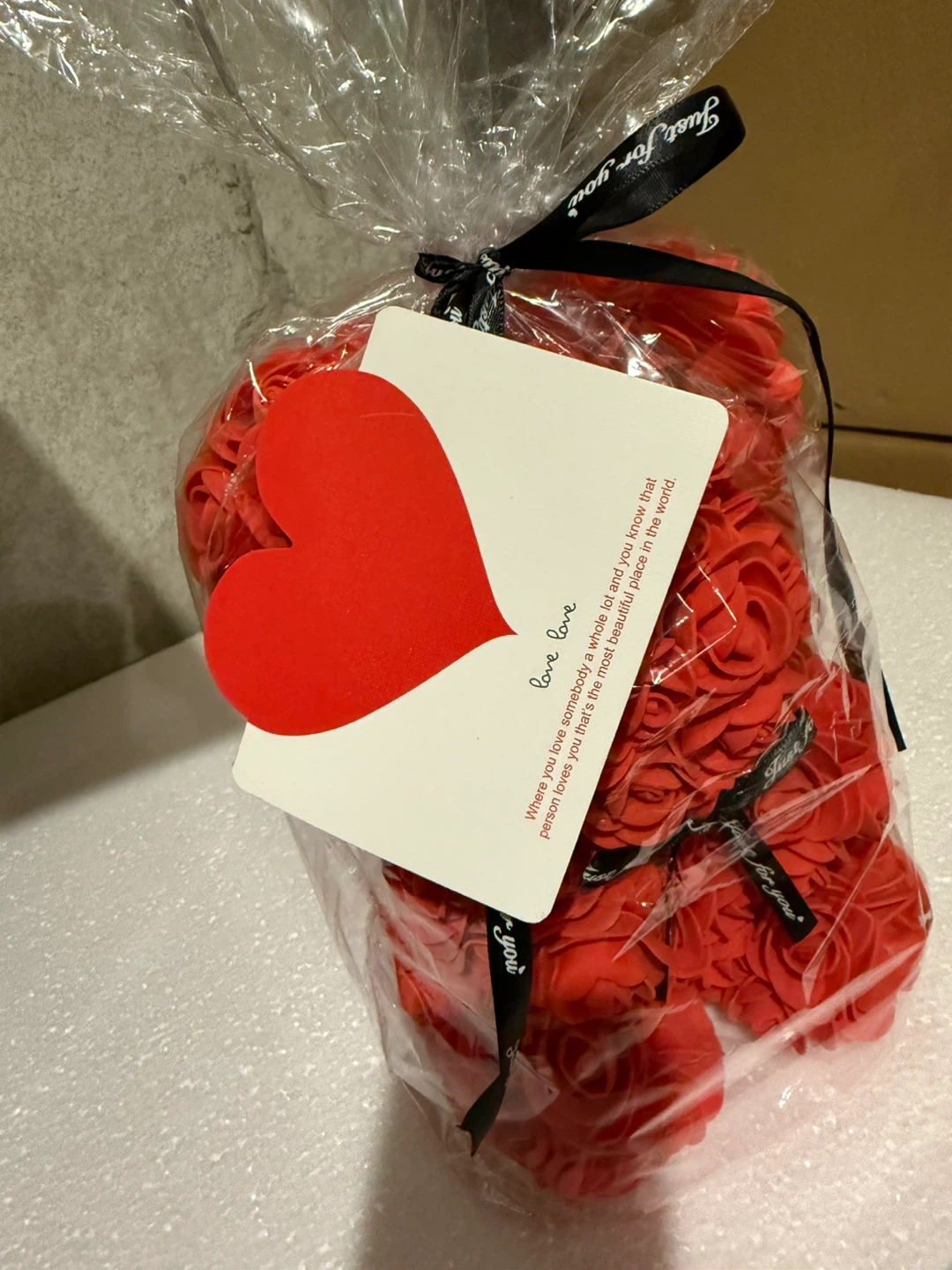 10” Rose Teddy Bear Artificial Flower Gift Bag and Letter Card