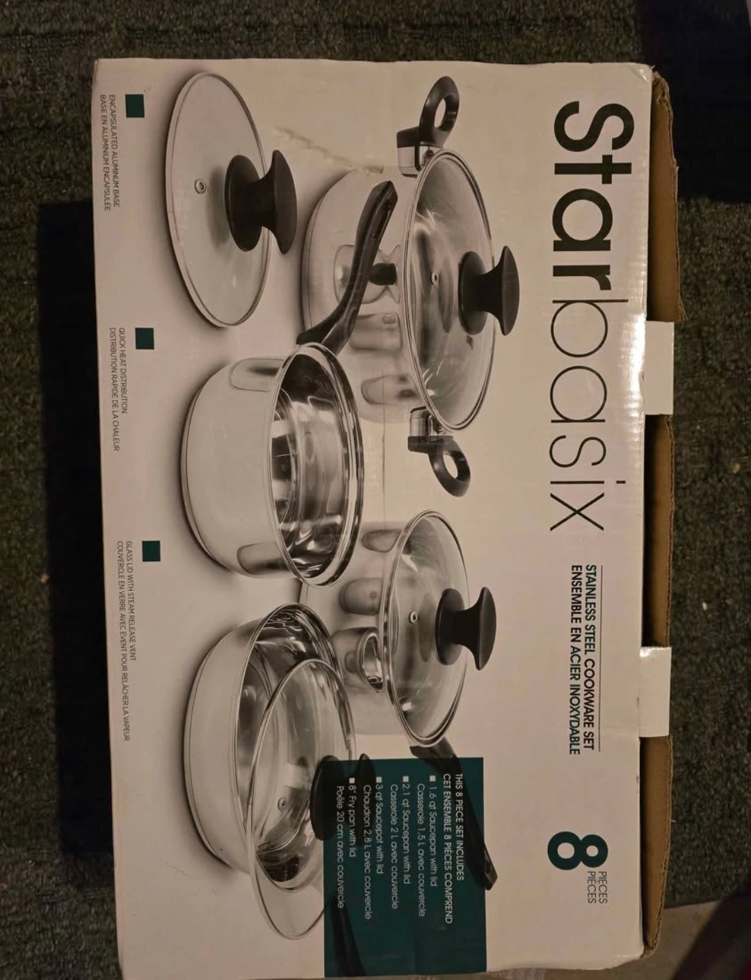 Selling a Starbasix 8-piece stainless steel cookware set! This set includes: