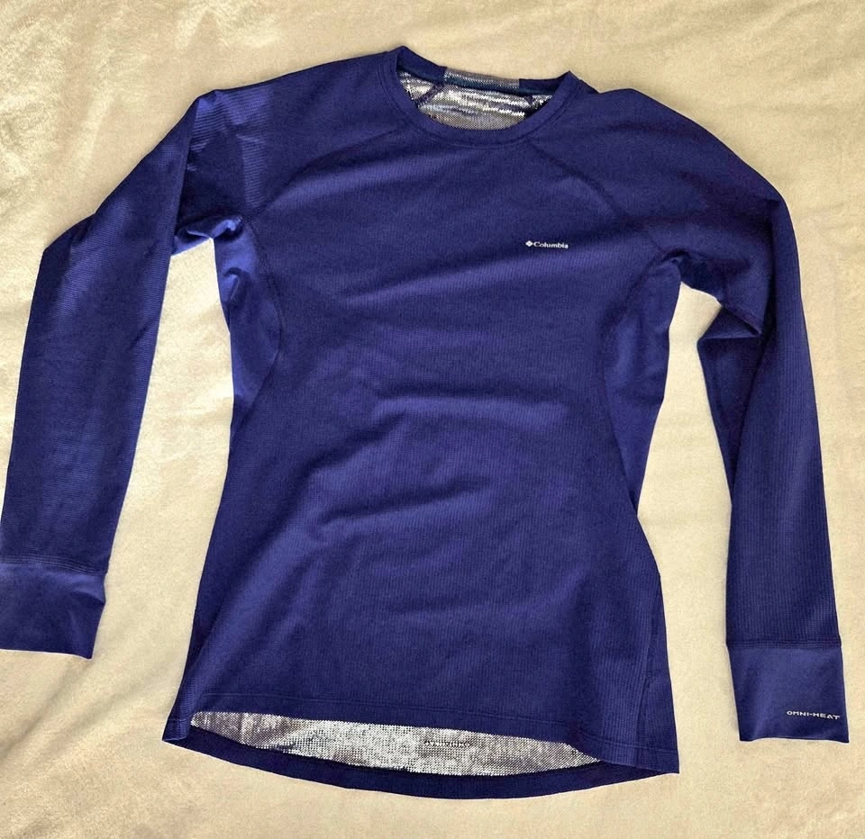 Beautiful purple long-sleeve Columbia technical shirt. OmniHeat silver lining and antimicrobial treatment.