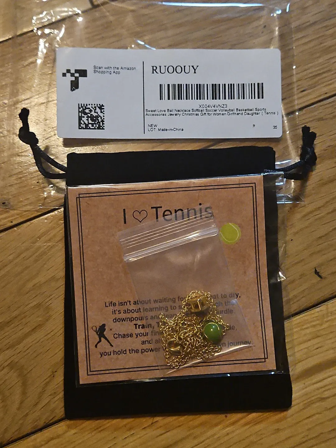 Selling a brand new RUOOUY "I Love Tennis" necklace! This sweet necklace features a gold chain and a green tennis ball charm. It comes in its original packaging and a black drawstring pouch, perfect for gifting!
