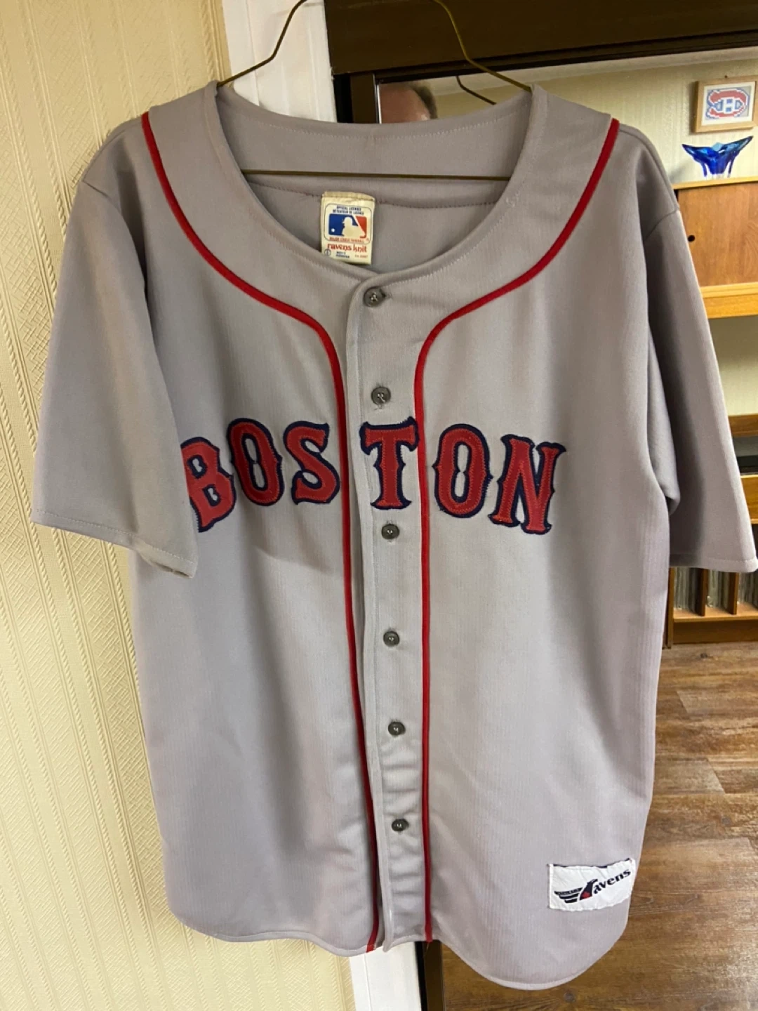 Selling a Ravens Athletic baseball jersey featuring 'Boston' and the number 21. The jersey is grey with red accents, giving it a classic baseball look. It's in great condition and ready for a new fan!