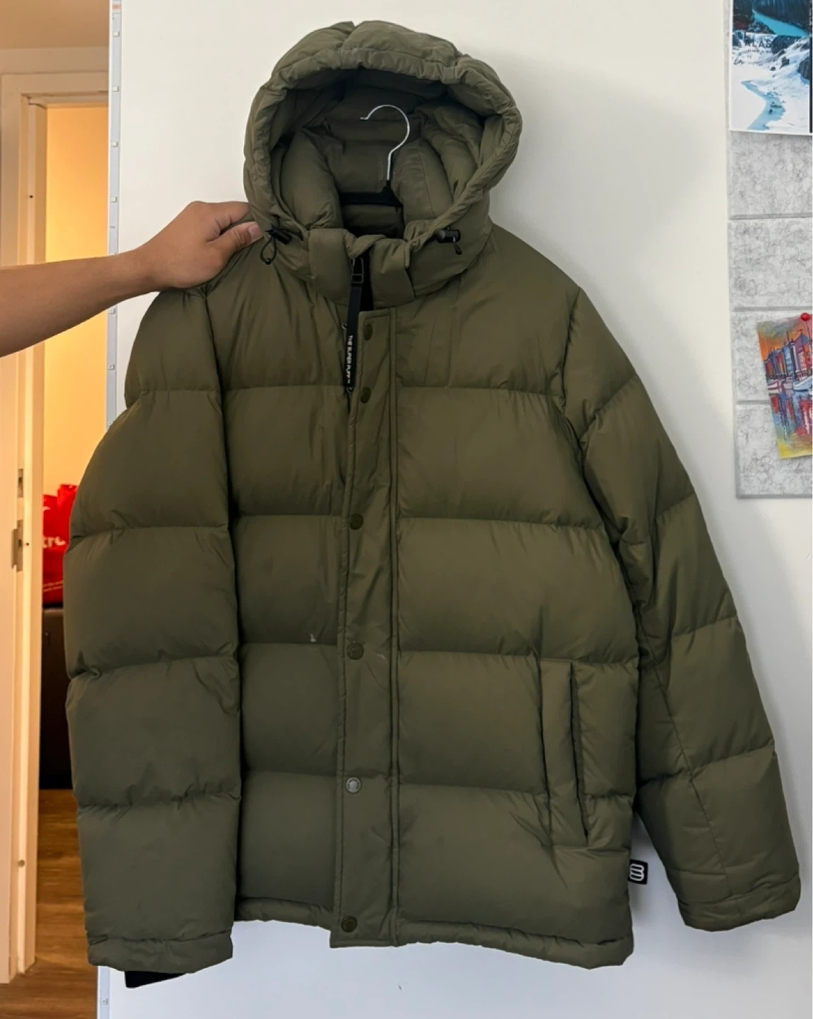 Selling a gently used puffer jacket in a nice olive green colour. It's in great shape and perfect for the cooler weather!
