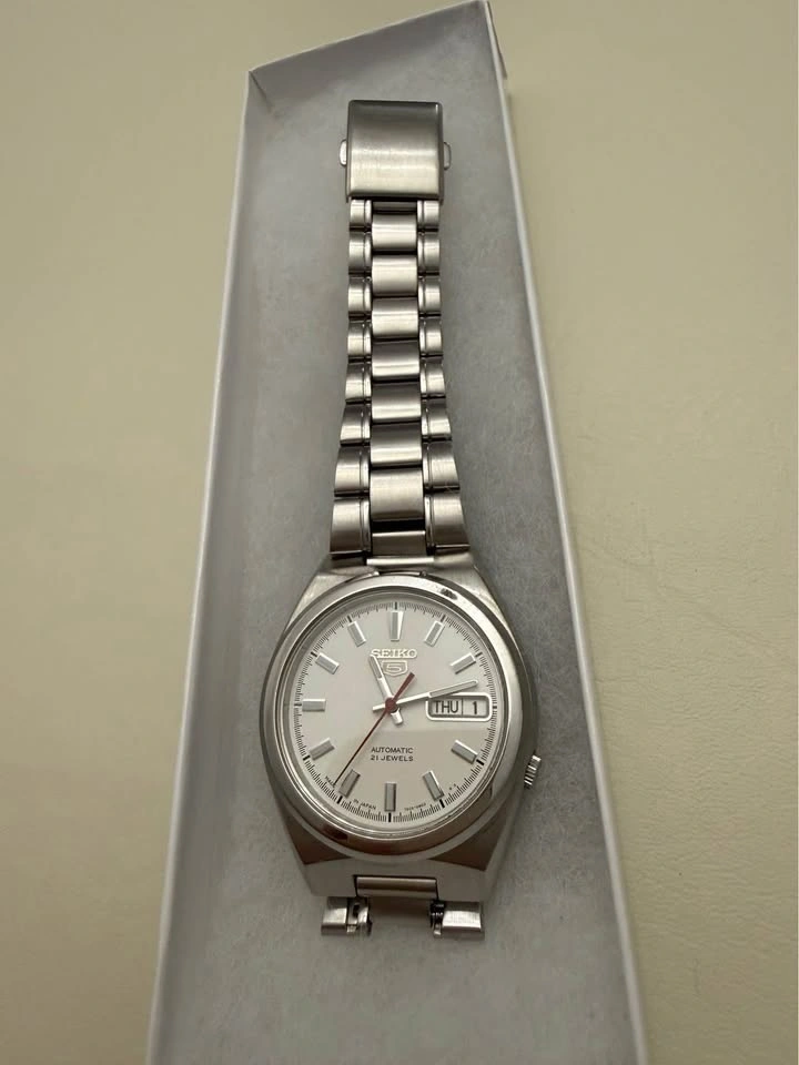 Seiko 5 Automatic Watch – White Dial 37mm