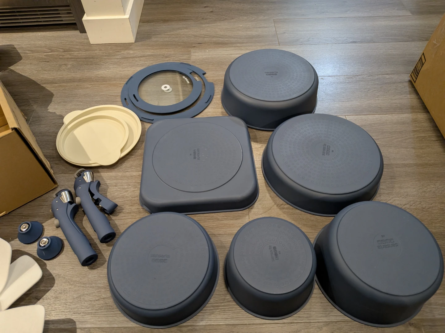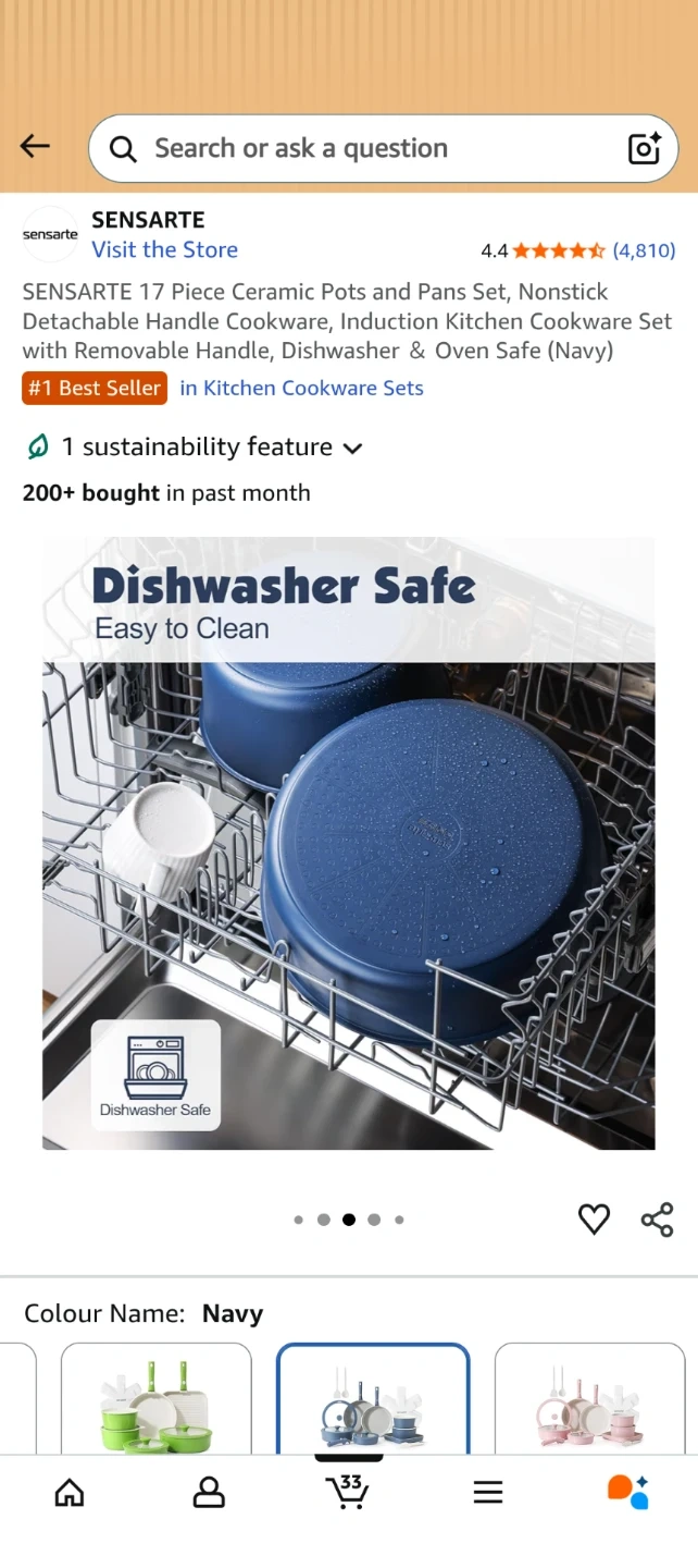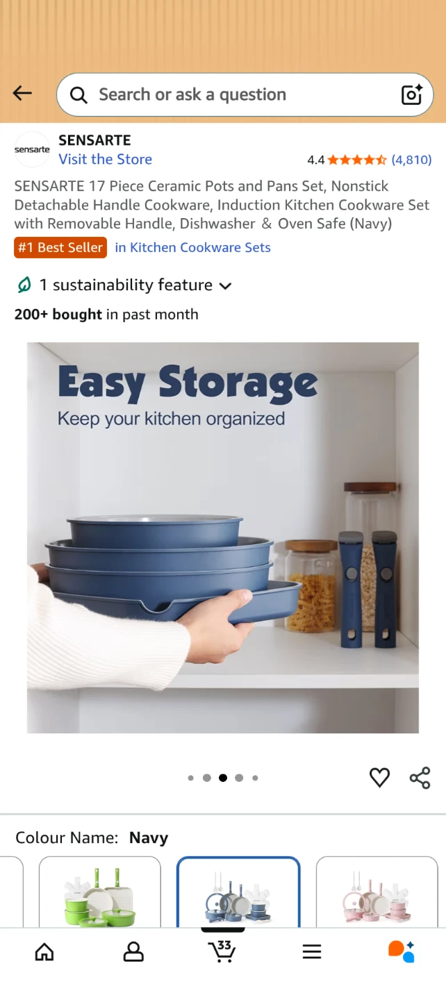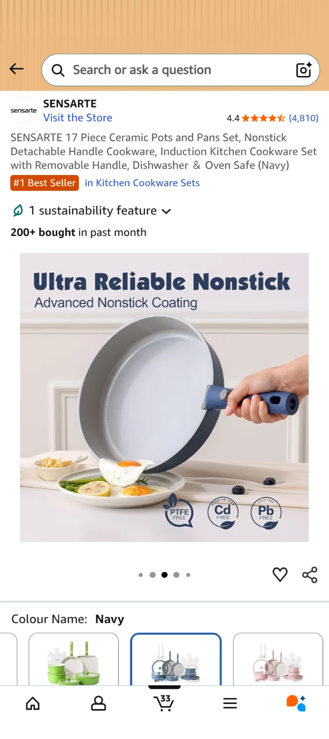 Looking to upgrade your kitchen? I'm selling a SENSARTE 17-piece ceramic cookware set in navy! This set includes pots and pans with removable handles, making storage a breeze. It's also dishwasher and oven safe. The advanced nonstick coating ensures ultra-reliable performance. Perfect for any home chef!