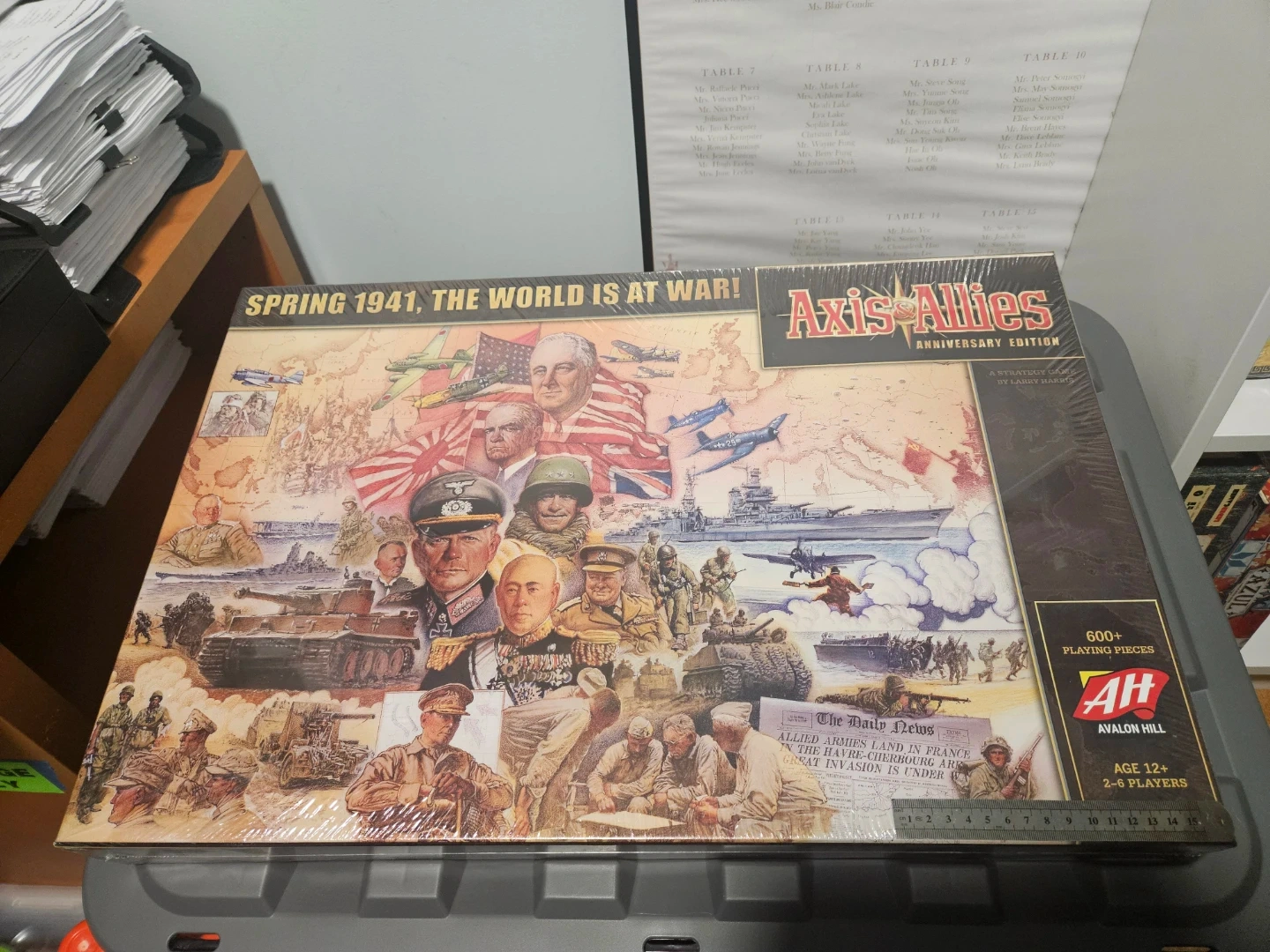 Selling a copy of Axis & Allies Anniversary Edition by Avalon Hill. It's a strategy game for 2-6 players, recommended for ages 12+. Includes 600+ playing pieces. Get ready for Spring 1941, the world is at war!