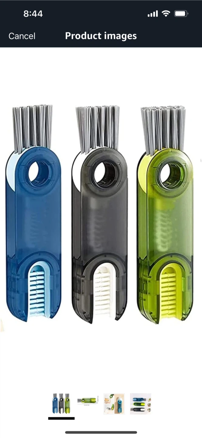 Keep your bottle caps sparkling clean with this handy 3-in-1 detail brush! It's perfect for getting into those hard-to-reach spots. The brushes come in blue, green, and black!